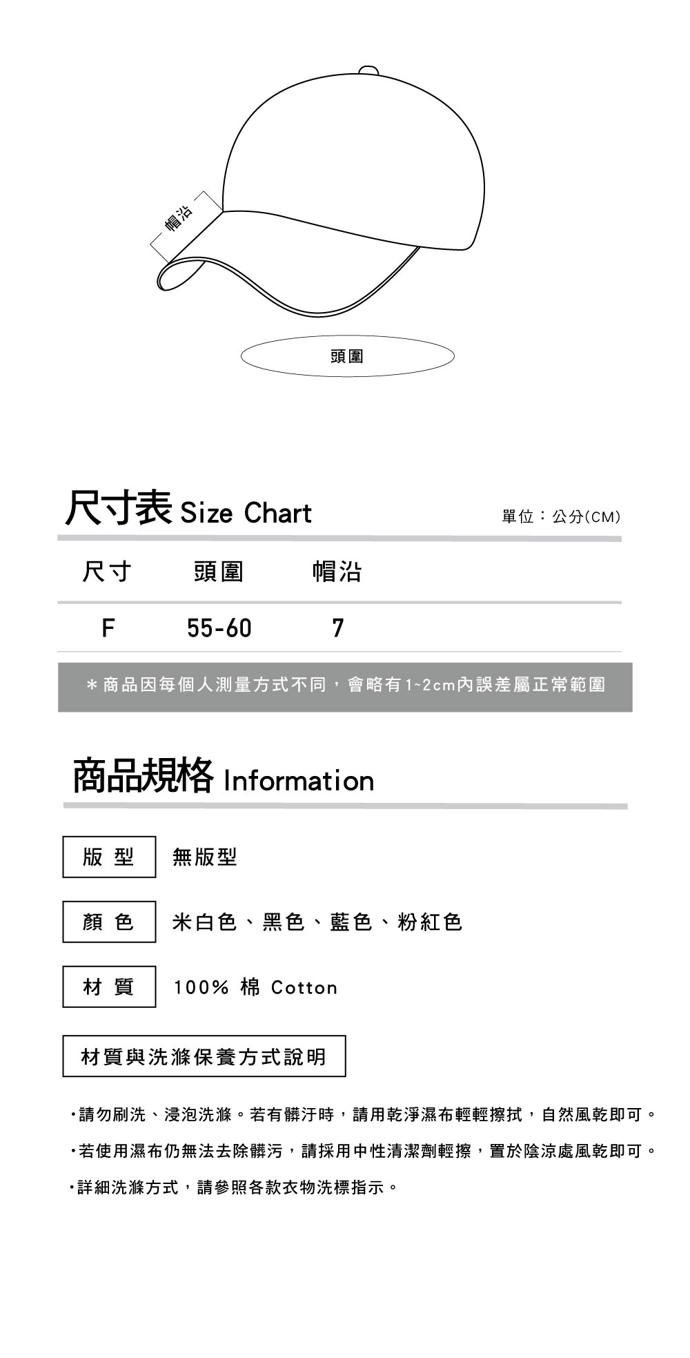 各種年紀、髮型都能駕馭的百搭單品!不管是長髮短髮或一頭未整理的亂髮,只要有它就通通不怕!具有挺度的棒球帽型,更能修飾臉部線條,時尚黑、質感白、潮流藍、甜美粉四種色系,輕鬆搭配不同風格