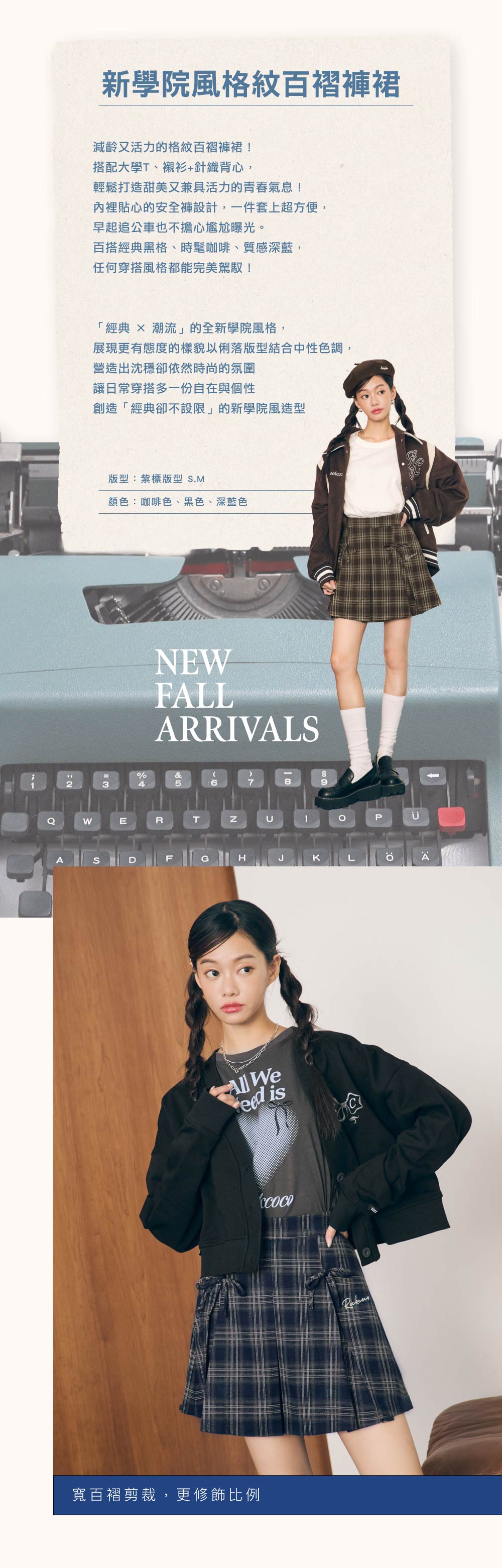 減齡又活力的格紋百褶褲裙!搭配大學T、襯衫+針織背心,輕鬆打造甜美又兼具活力的青春氣息!內裡貼心的安全褲設計,一件套上超方便,早起追公車也不擔心尷尬曝光。百搭經典黑格、時髦咖啡、質感深藍,任何穿搭風格都能完美駕馭