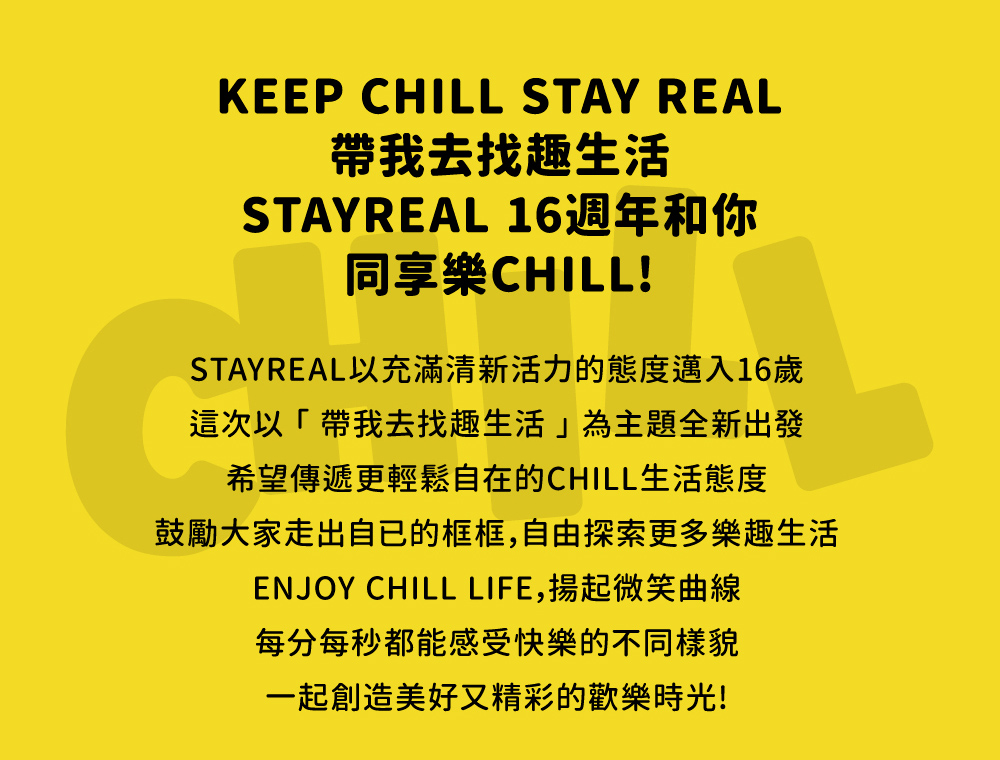 以「帶我去找趣生活」為主題出發,鼓勵大家探索樂趣生活,ENJOY CHILL LIFE