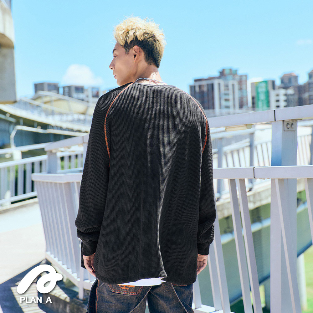 寬鬆的流行剪裁,搭配跳色車線的設計元素,是款穿搭性高的流行單品