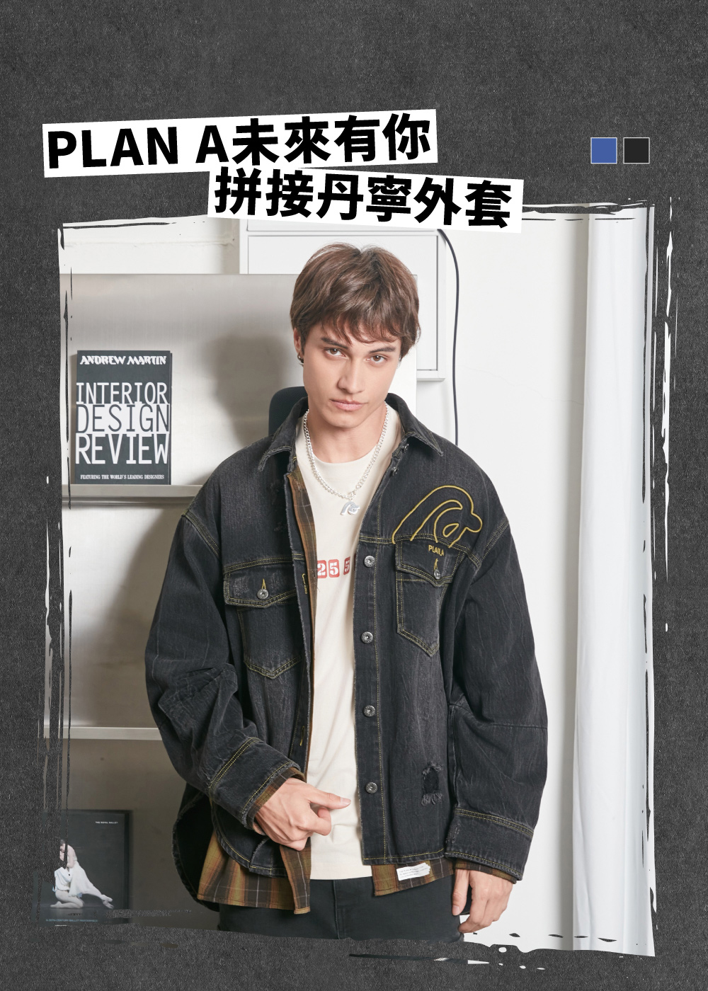 STAYREAL PLAN A未來有你拼接丹寧外套