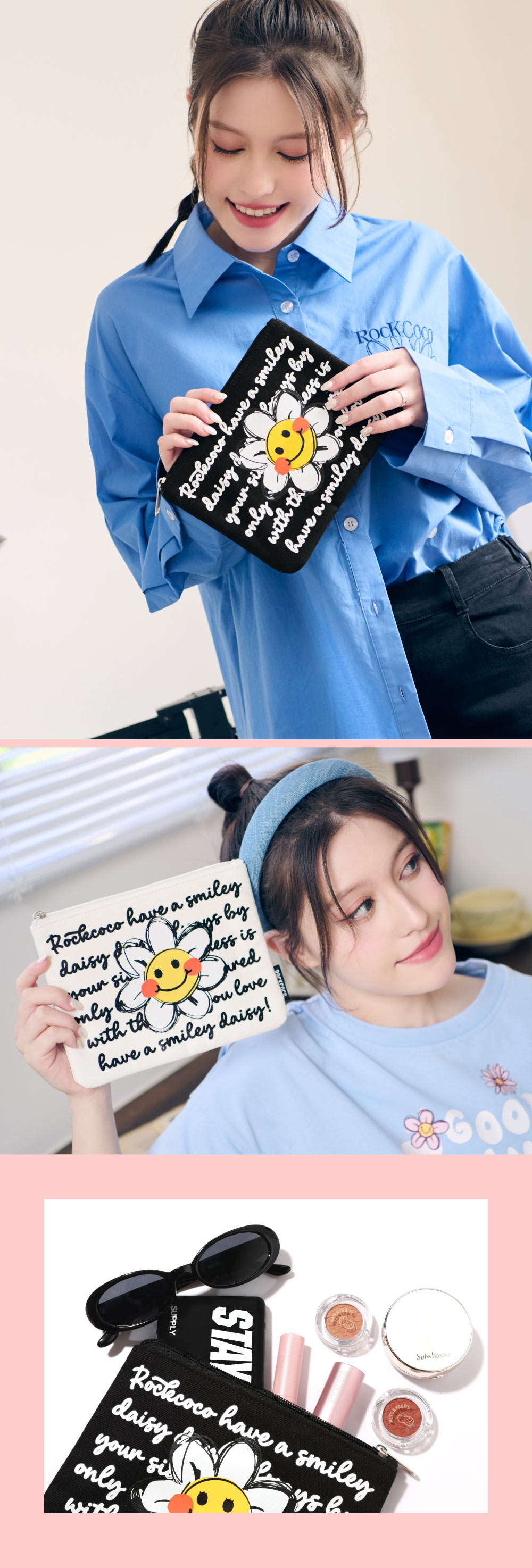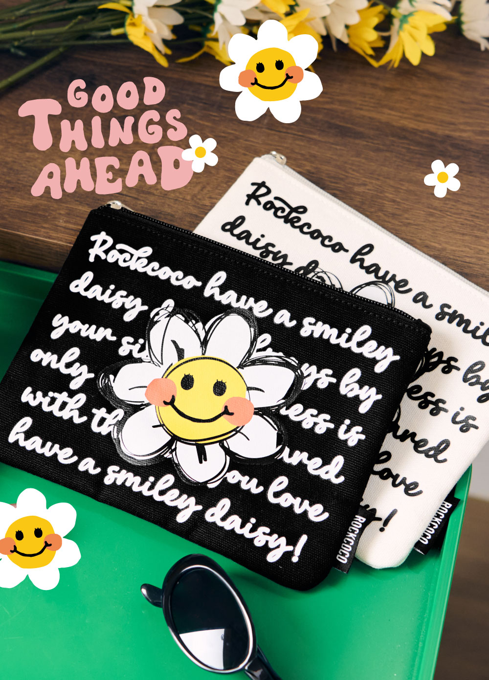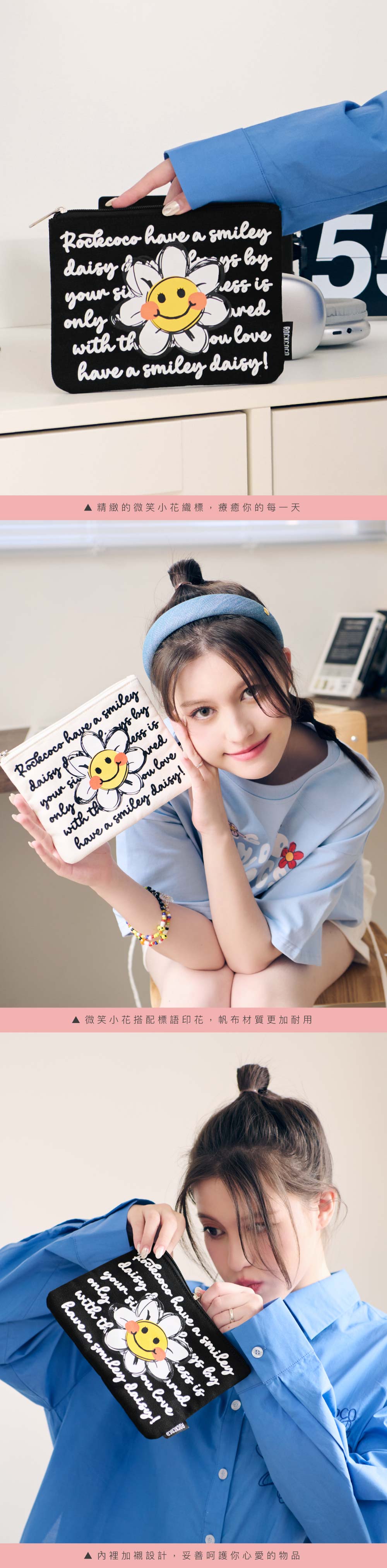 微笑小花搭配滿版標語印花,療癒你的每一天