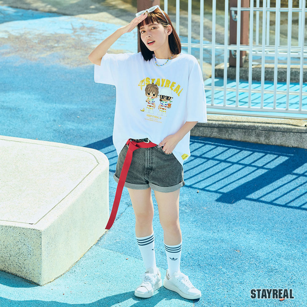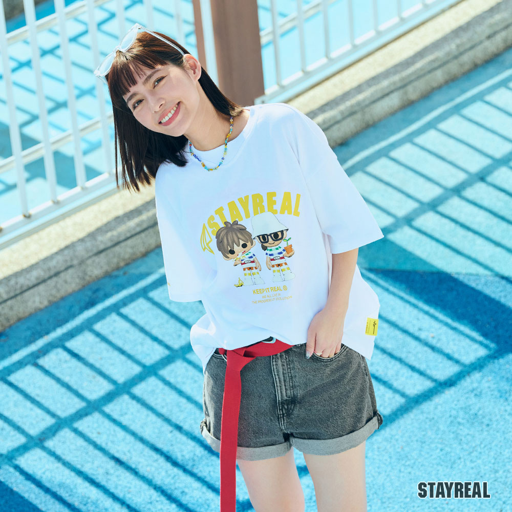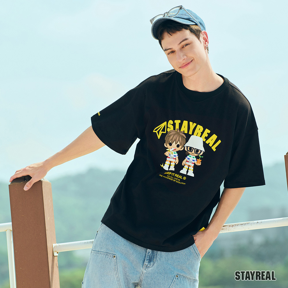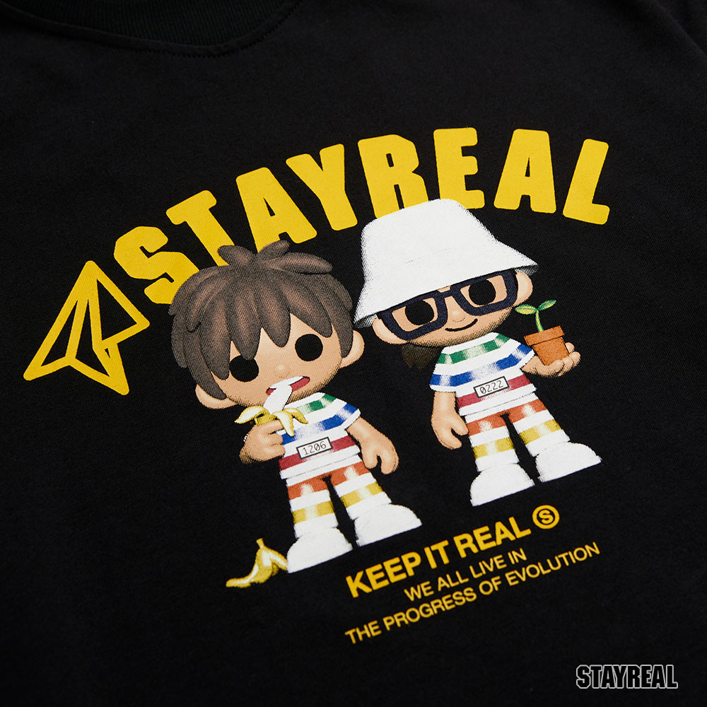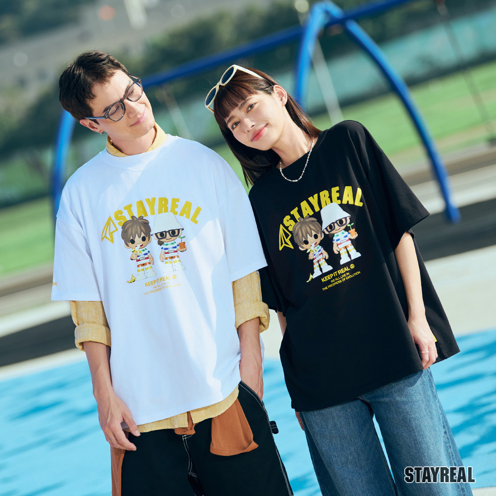 以精緻的網點印花技術,立體呈現雙主理人活靈活現的公仔樣貌!延續17週年當我們同在㇐起的友情元素:以充滿陽光能量的「好蕉情-黃」x搶搭盛夏特有的多彩設計,融入雙主理人公仔形象的服裝配色之中。向大家宣告著STAYREAL與你,擁有著像彩虹般耀眼的「好蕉情」!