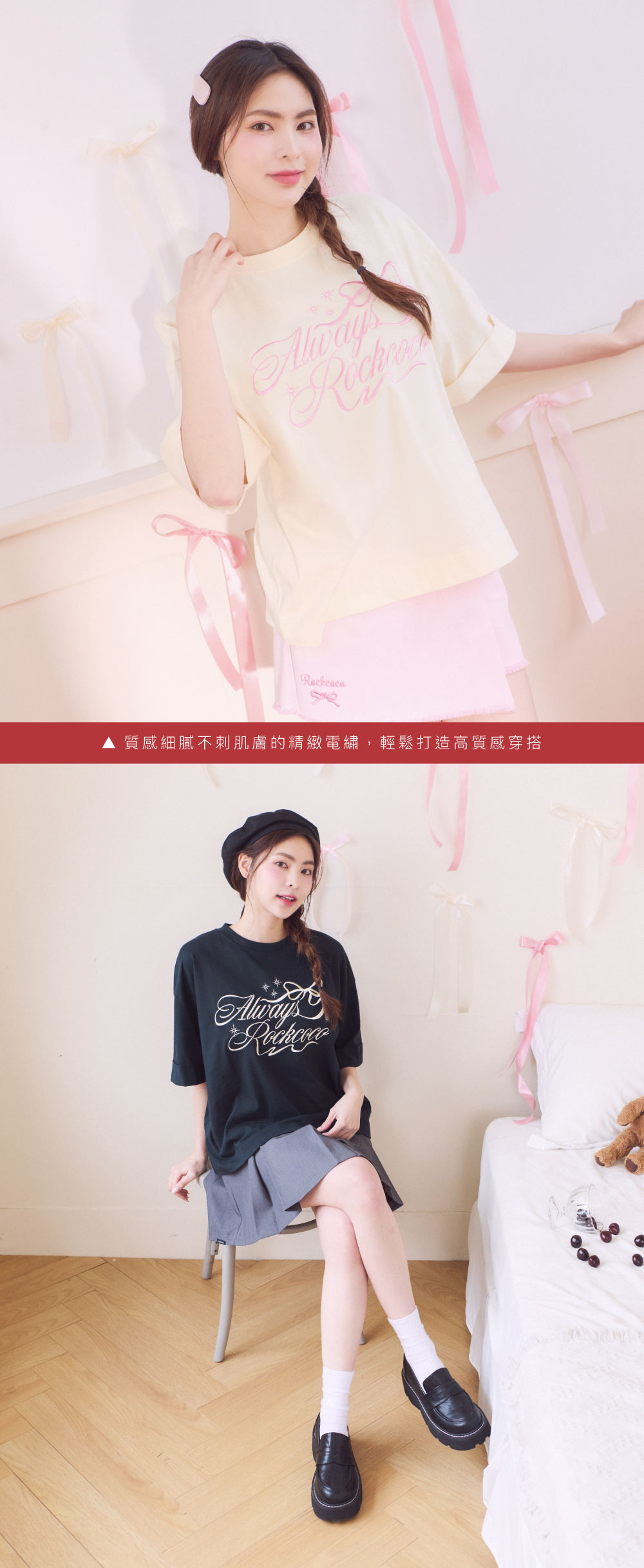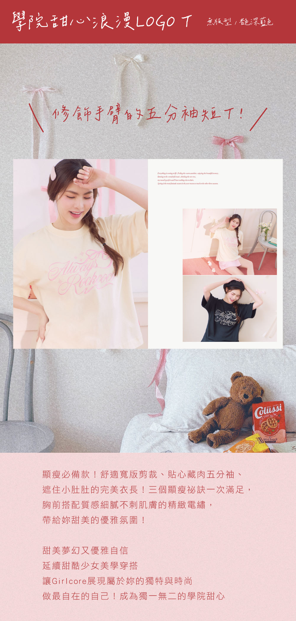 顯瘦必備款!舒適寬版剪裁、貼心藏肉五分袖、遮住小肚肚的完美衣長!三個顯瘦祕訣一次滿足,胸前搭配質感細膩不刺肌膚的精緻電繡,帶給妳甜美的優雅氛圍!