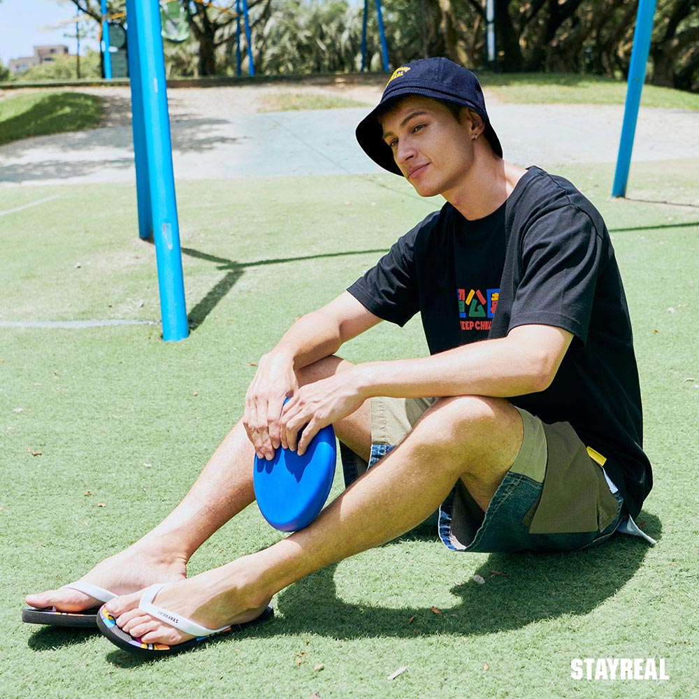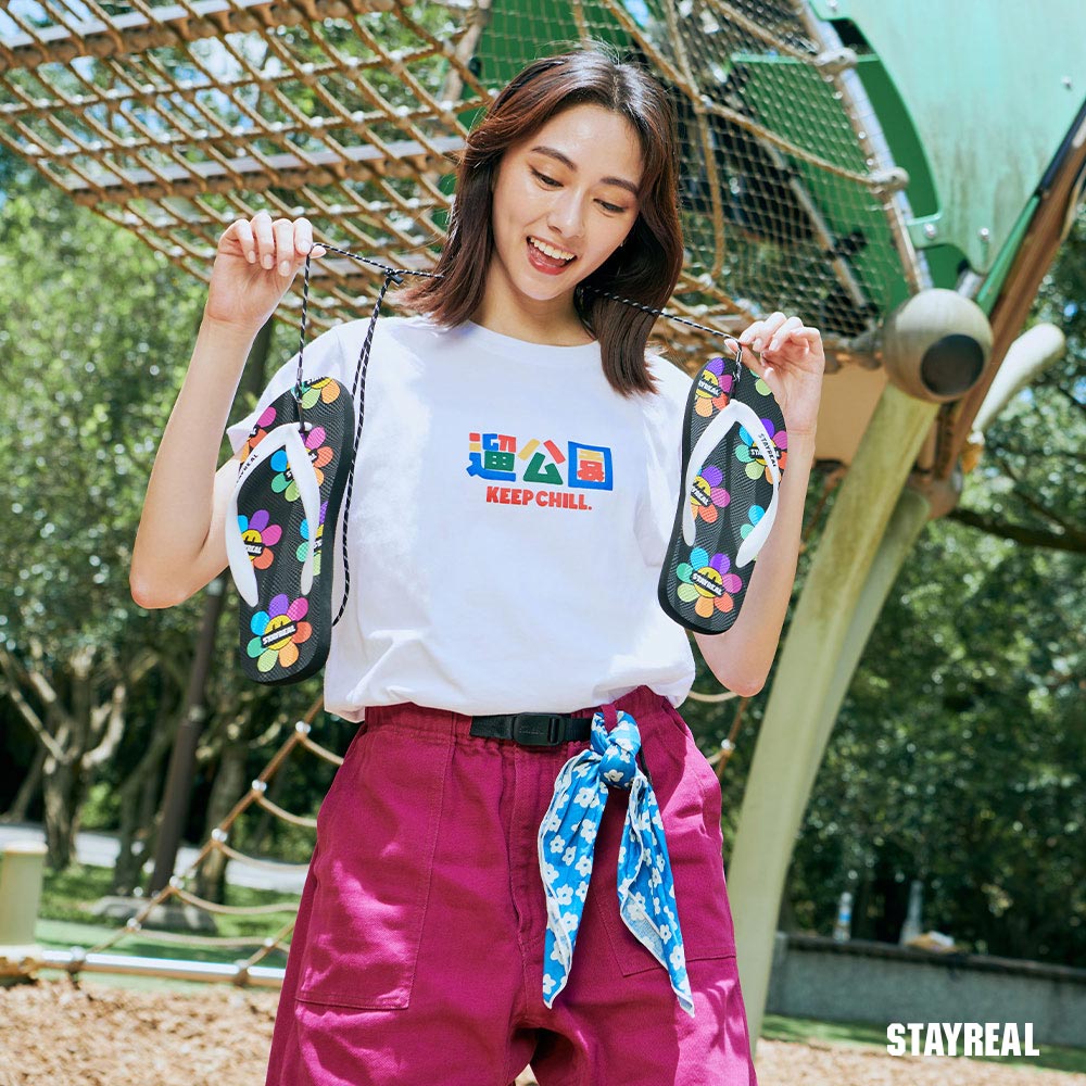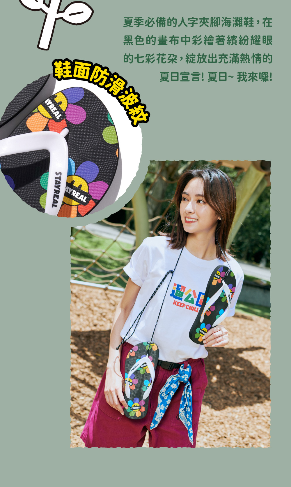 夏季必備的人字夾腳海灘鞋,在黑色的畫布中彩繪著繽紛耀眼的七彩花朵,綻放出充滿熱情的夏日宣言!夏日~ 我來囉!