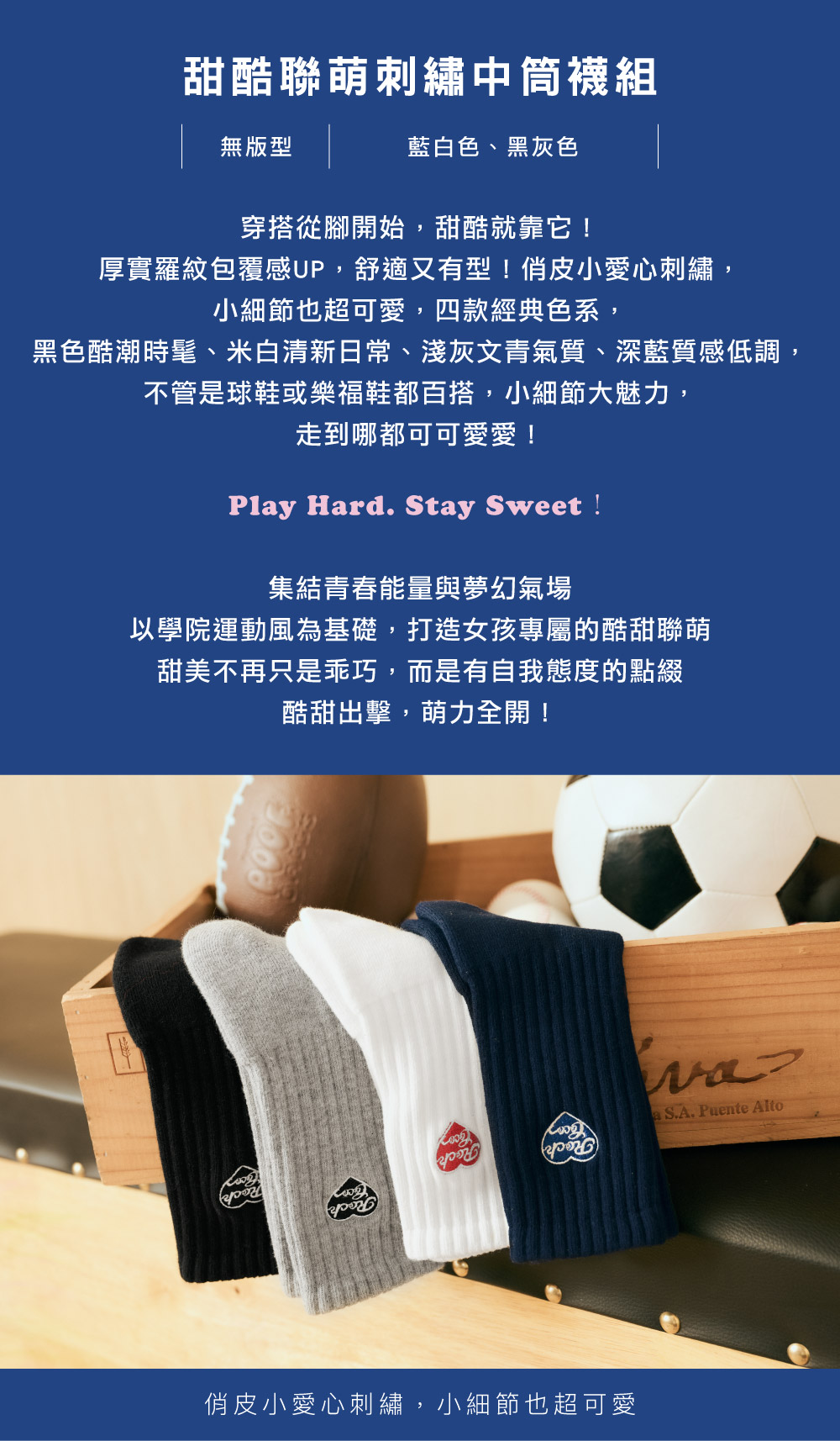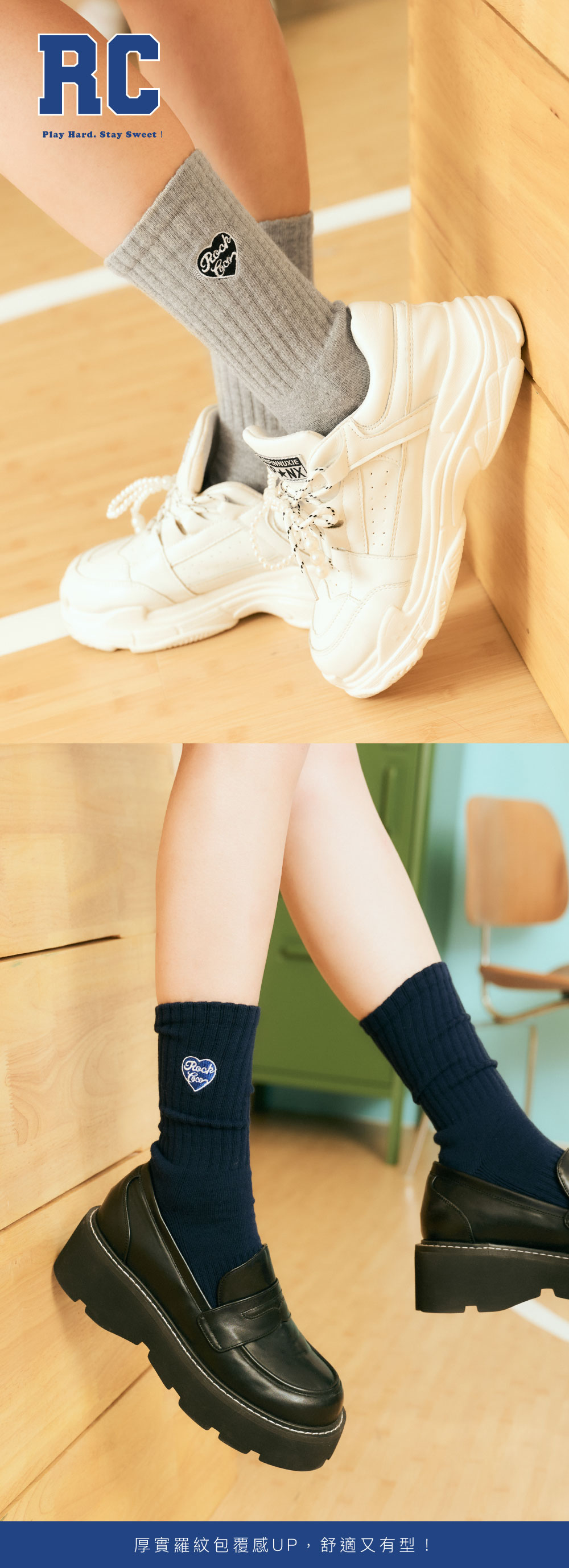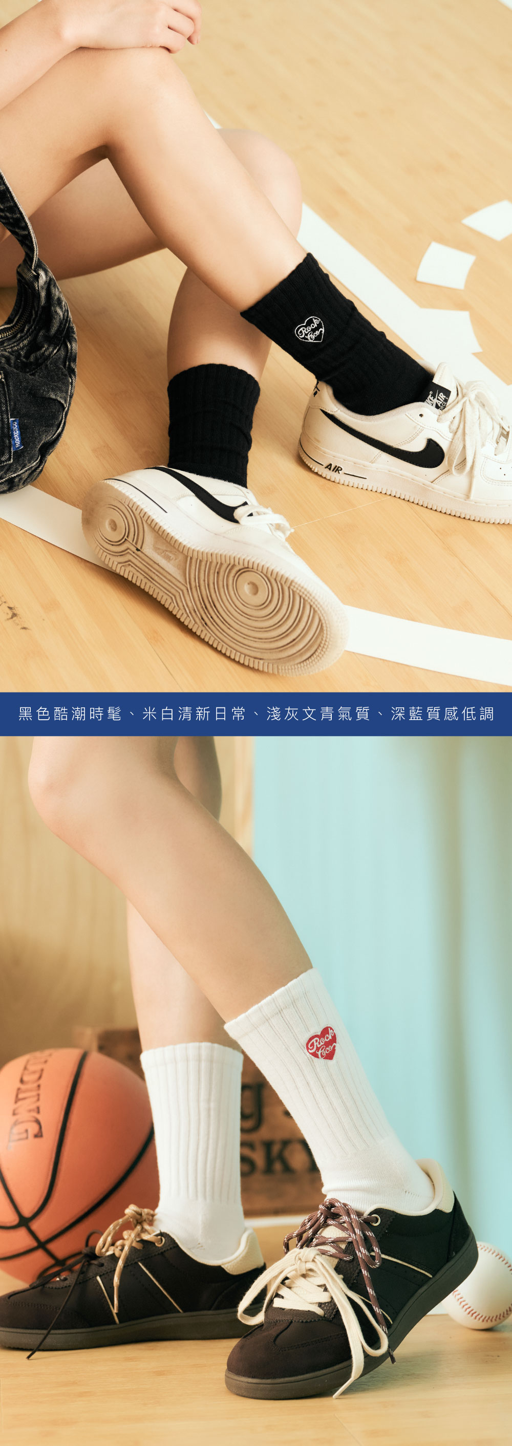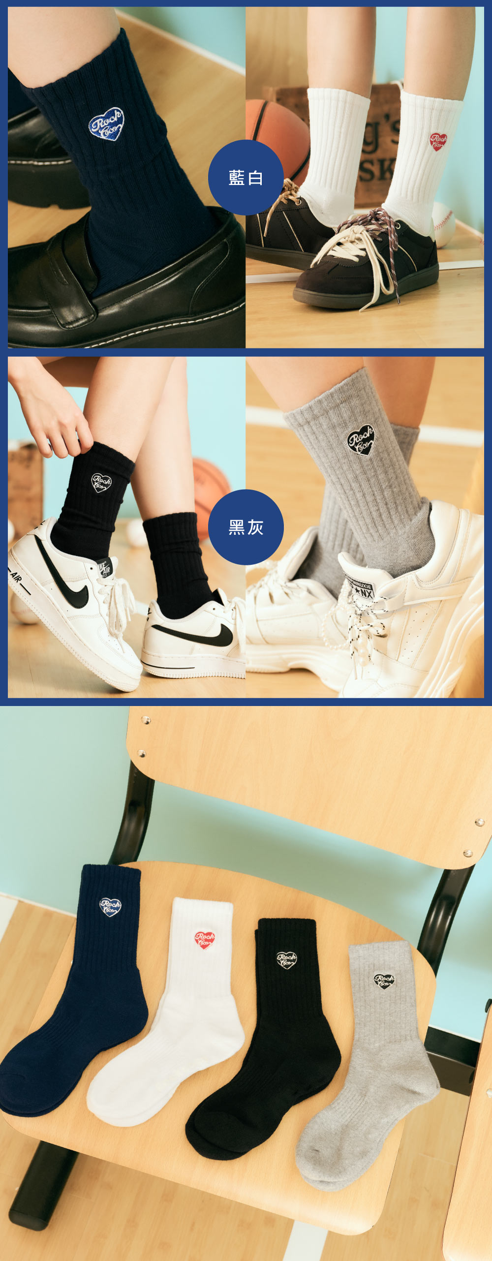 厚實羅紋包覆感UP,舒適又有型!俏皮小愛心刺繡,小細節也超可愛,四款經典色系,黑色酷潮時髦、米白清新日常、淺灰文青氣質、深藍質感低調,不管是球鞋或樂福鞋都百搭,小細節大魅力,走到哪都可可愛愛