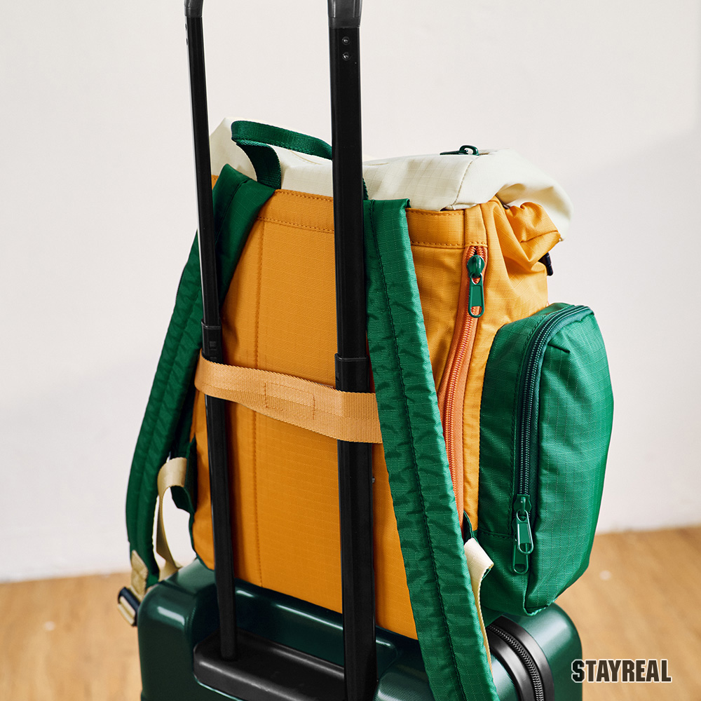 背面有可插拉桿的結構,移動時可以把後背包放在拉桿上不用擔心背包會掉下來