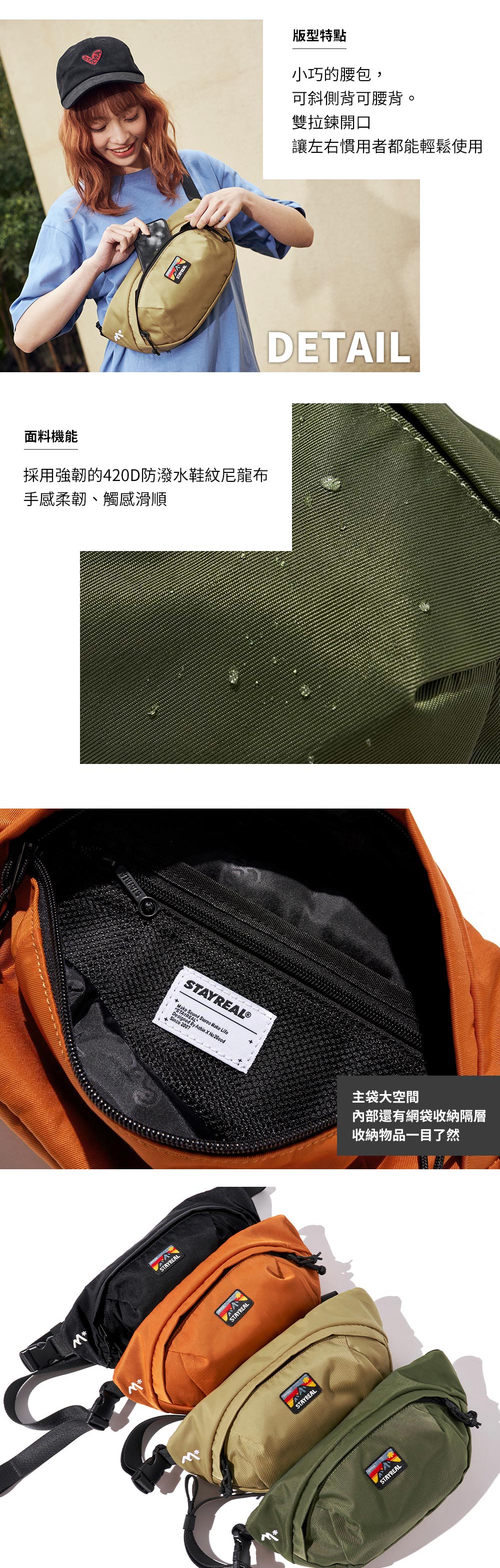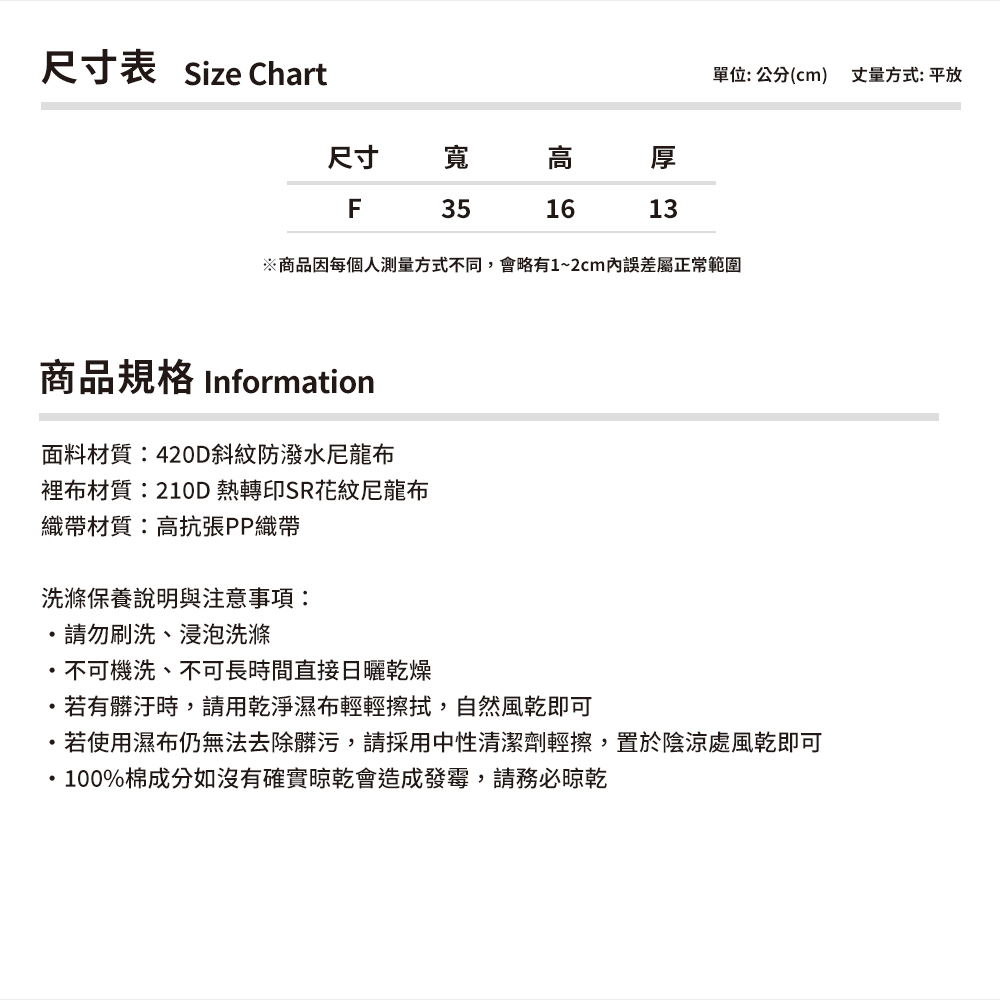 採用強韌的420D防潑水鞋紋尼龍布。手感柔韌、觸感滑順