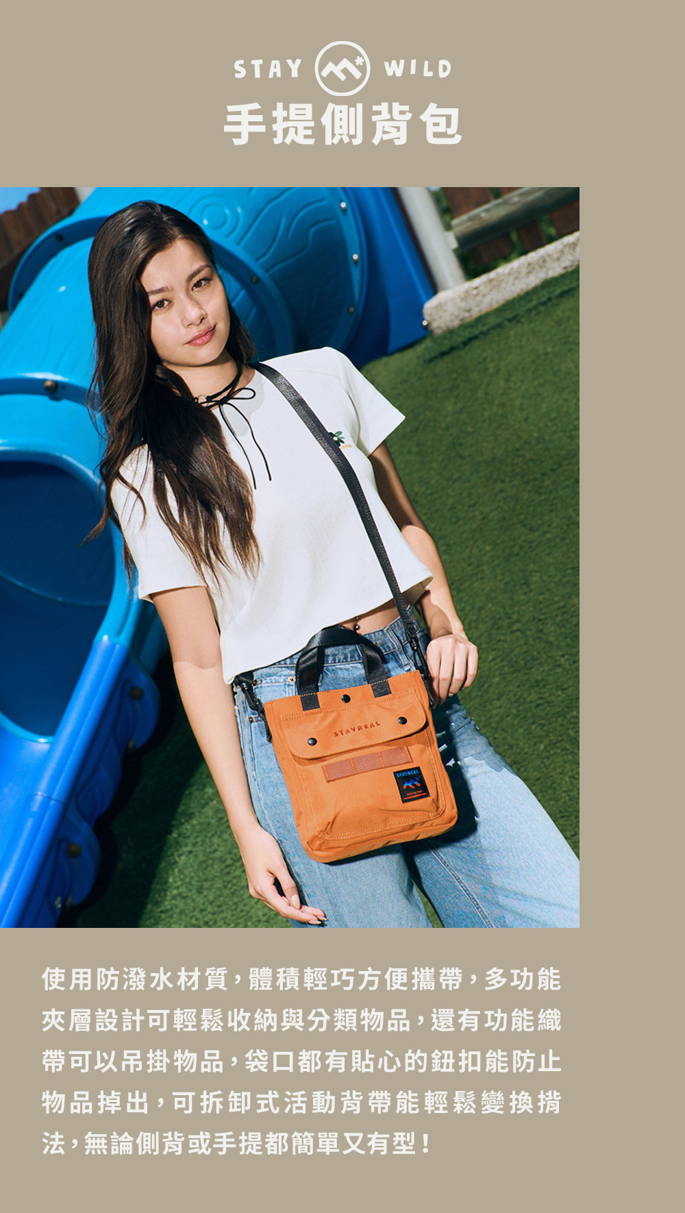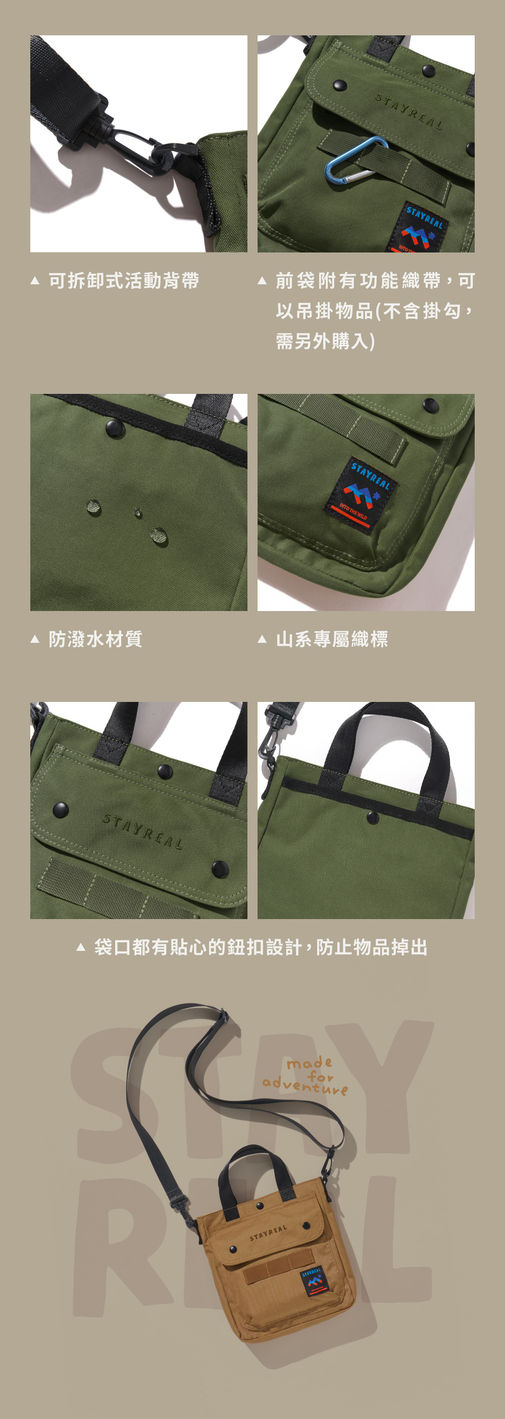 前附袋上的織帶扣條可以加登山鉤加掛物品