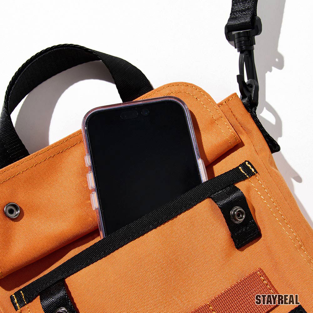 多口袋分層收納設計,前後都有口袋,主袋內還有網袋將物品隔開