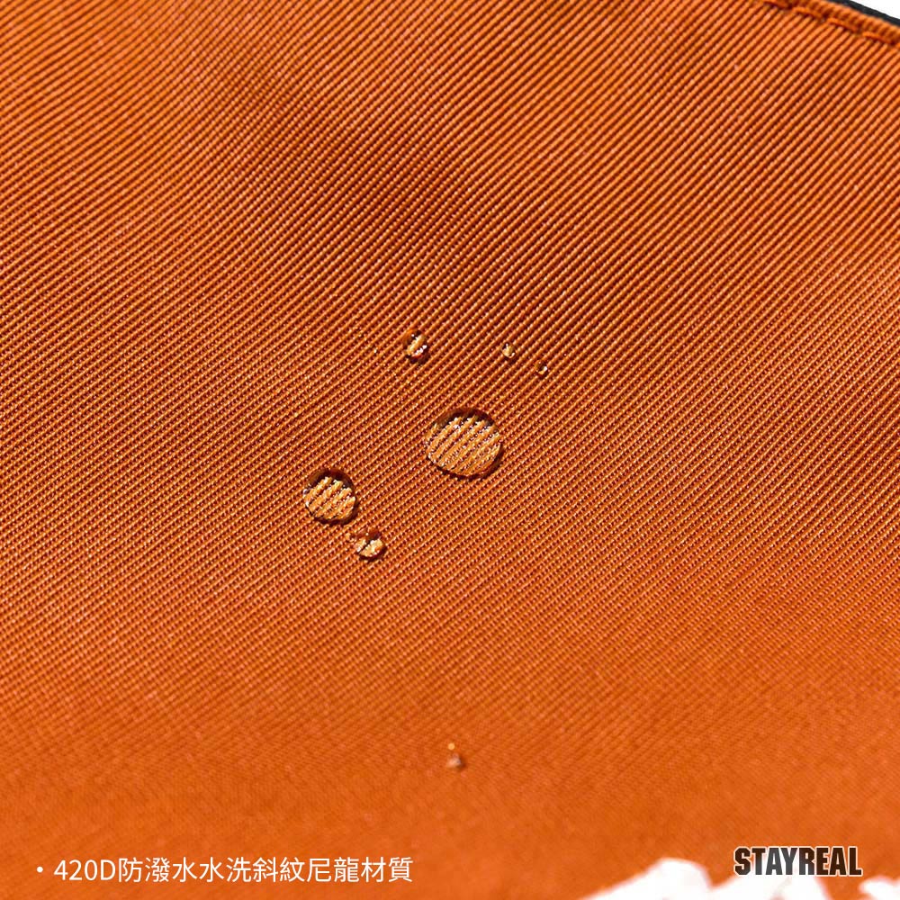 420D防潑水水洗斜紋尼龍,扎實的手感及特殊的水洗染色效果營造出自然的高級感
