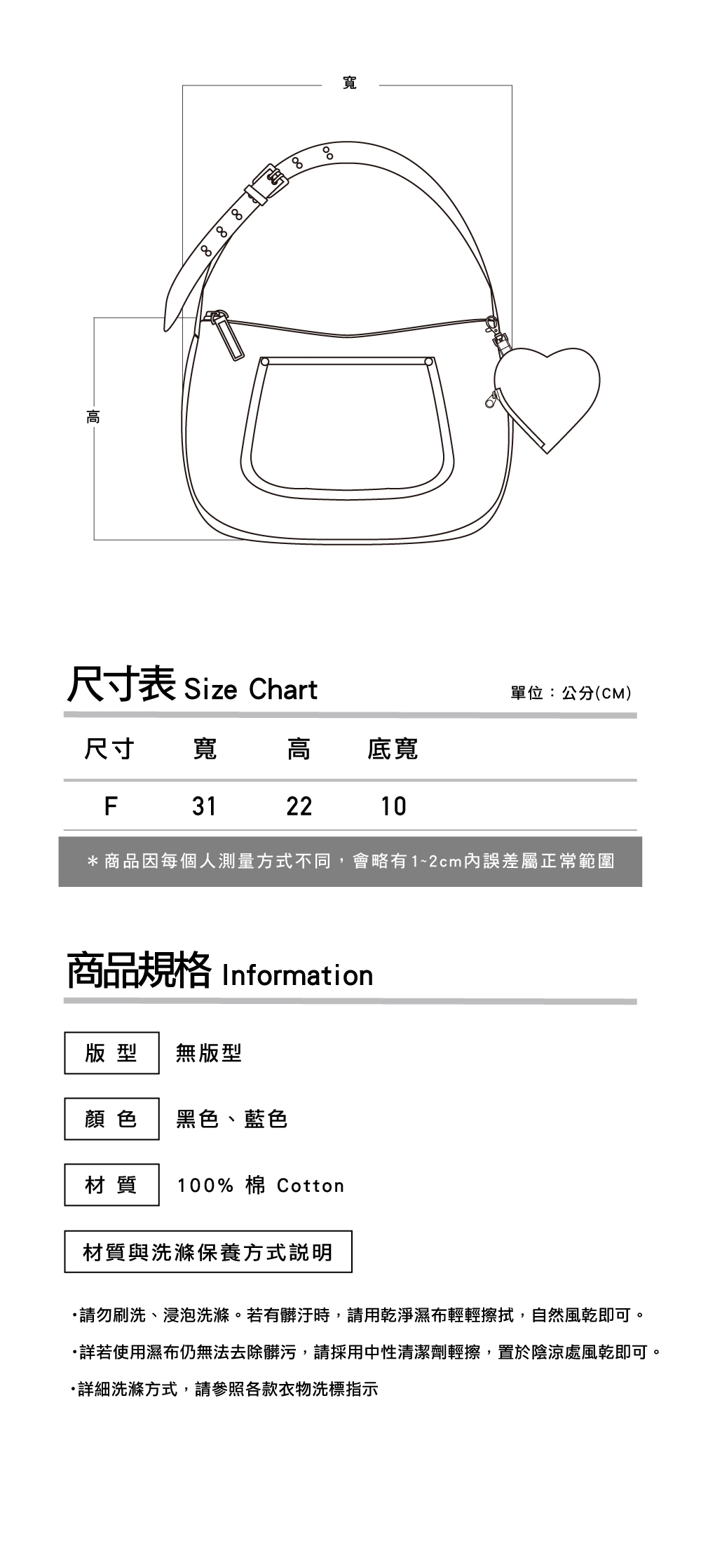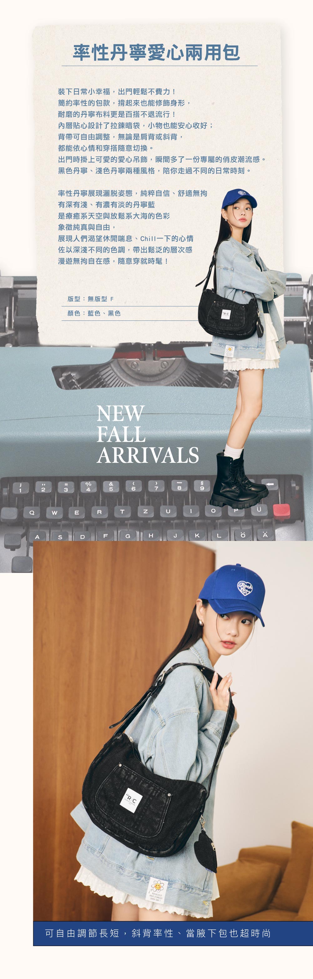 簡約率性的包款,揹起來也能修飾身形,耐磨的丹寧布料更是百搭不退流行!內層貼心設計了拉鍊暗袋,小物也能安心收好;背帶可自由調整,無論是肩背或斜背,都能依心情和穿搭隨意切換。出門時掛上可愛的愛心吊飾,瞬間多了一份專屬的俏皮潮流感。黑色丹寧、淺色丹寧兩種風格,陪你走過不同的日常時刻