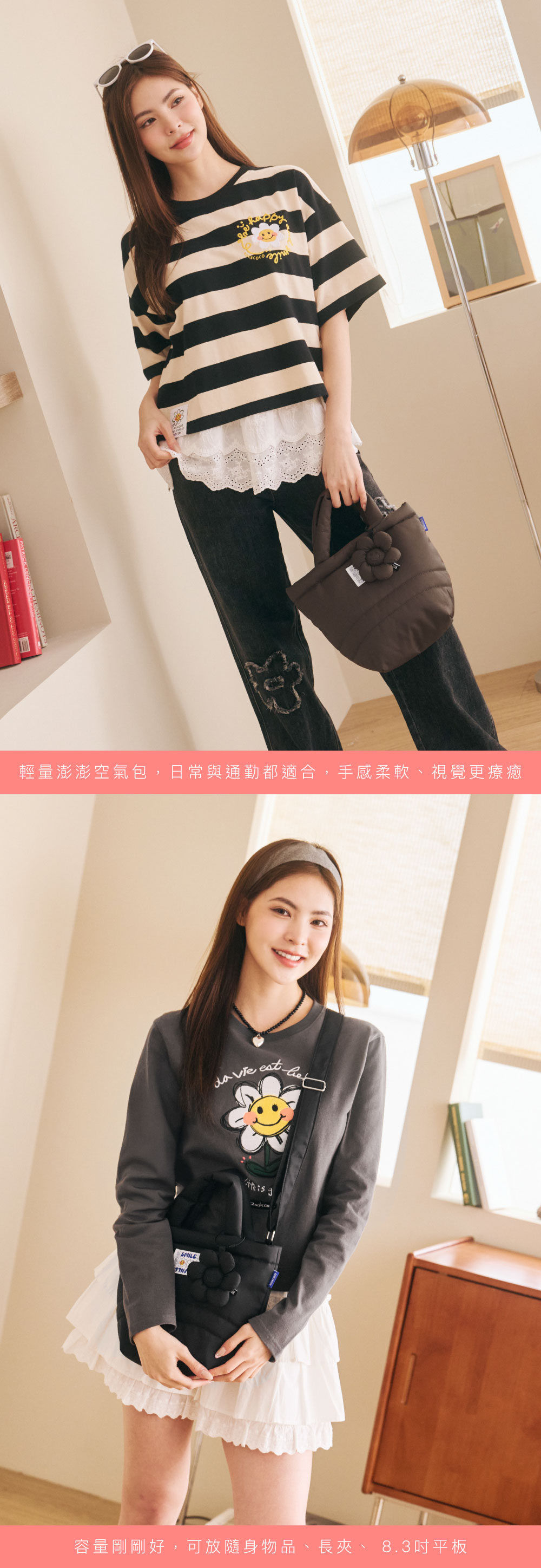 澎澎的可愛輪廓搭配柔軟手把,一背上身就像被療癒抱住,日常通勤、外出小旅行都剛剛好