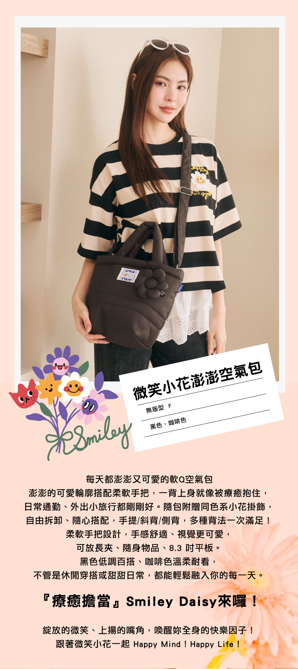 隨包附贈同色系小花掛飾,自由拆卸、隨心搭配,手提/斜背/側背,多種背法一次滿足