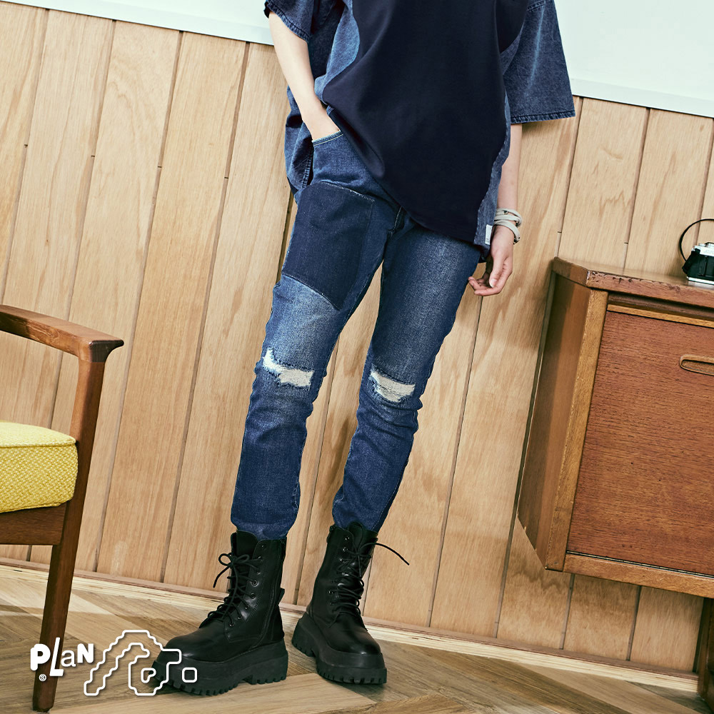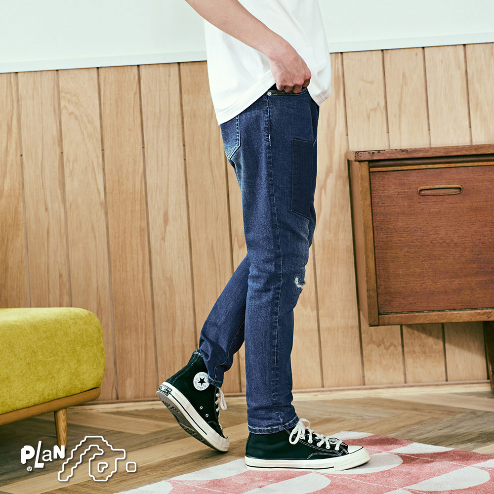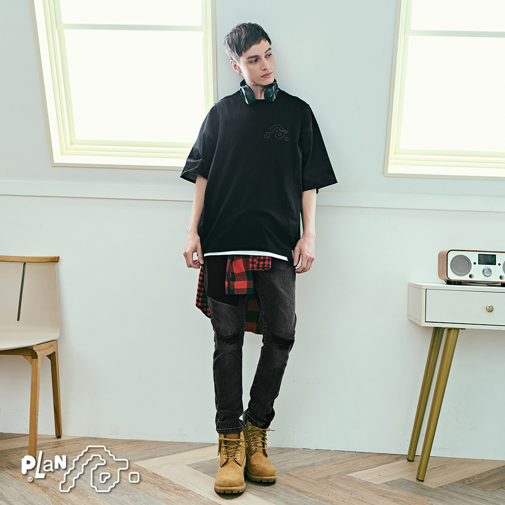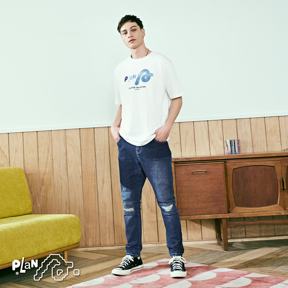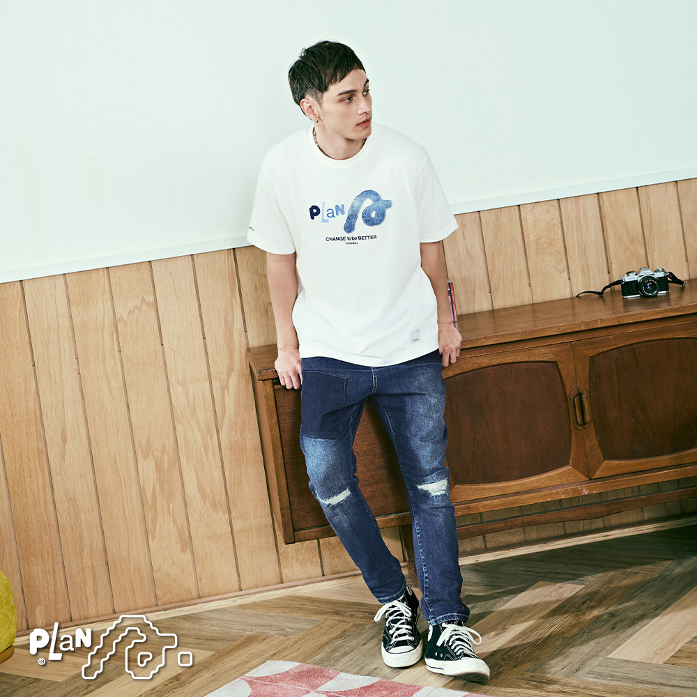 破壞細節內襯牛仔布,腰頭保留褲耳可搭配腰帶,口袋與褲身做配色處理,整體視覺更活潑