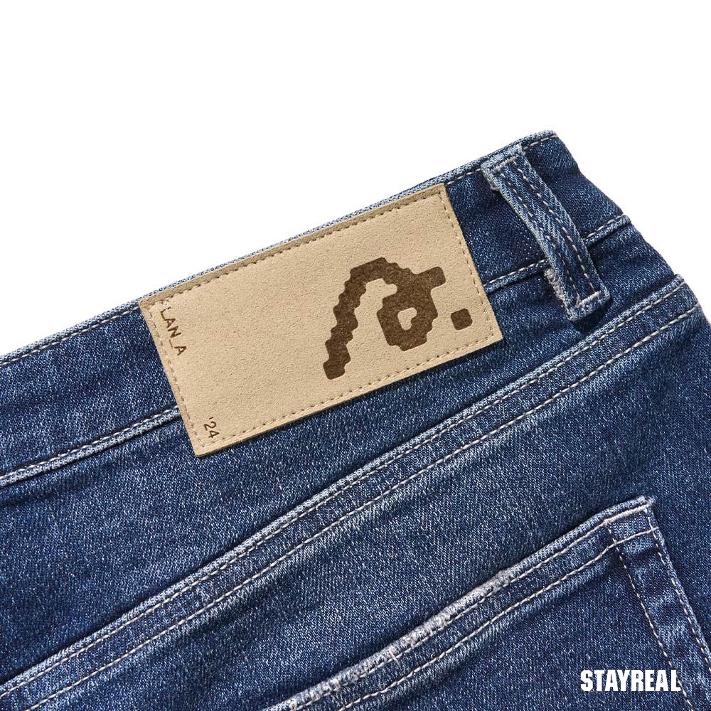 後口袋處品牌夾標,搭配後腰麂皮名牌標,經典呈現