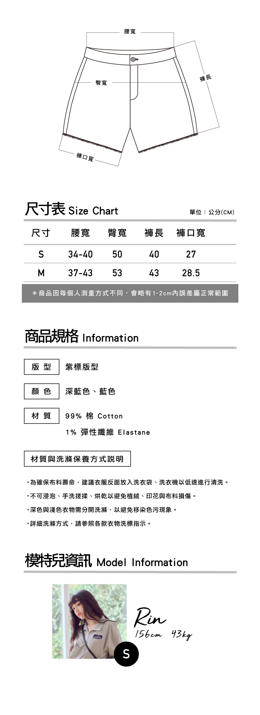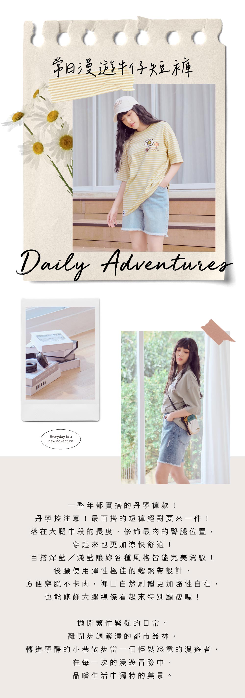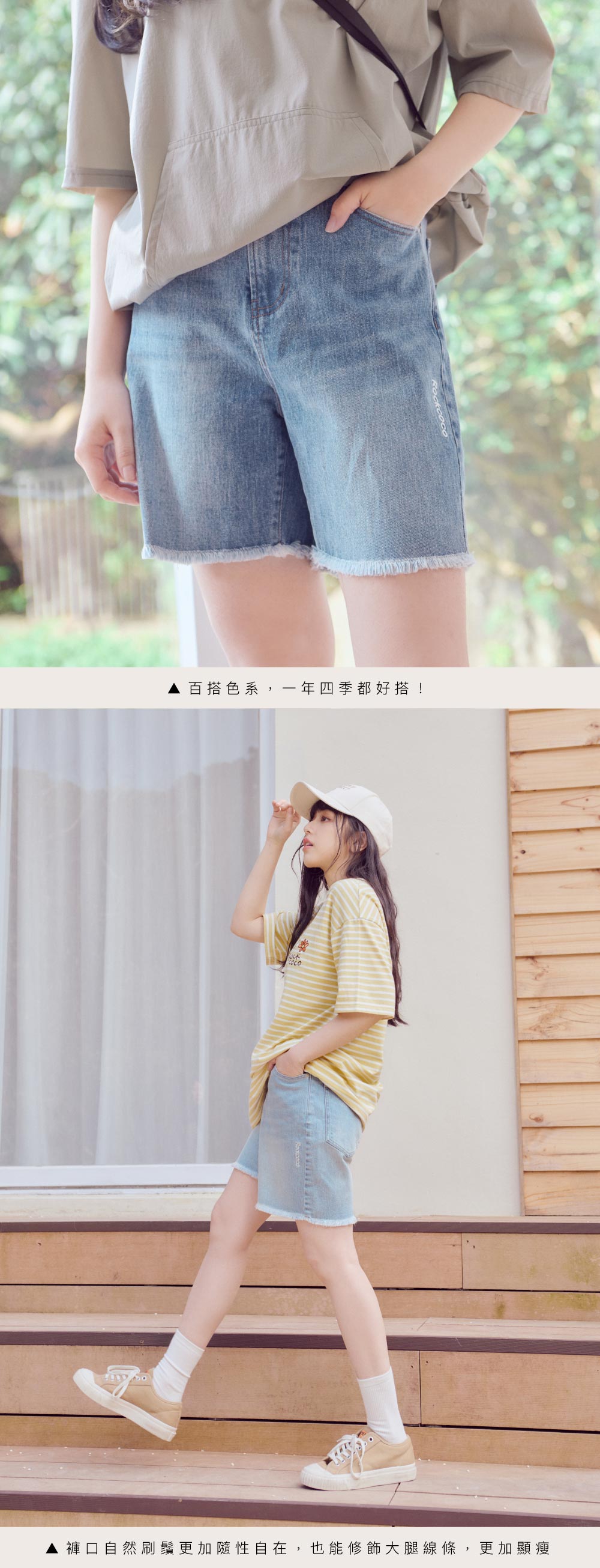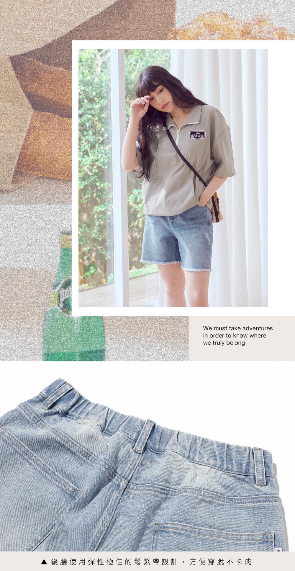 丹寧控注意!最百搭的短褲絕對要來一件!落在大腿中段的長度,修飾最肉的臀腿位置,穿起來也更加涼快舒適!百搭深藍/淺藍讓妳各種風格皆能完美駕馭!後腰使用彈性極佳的鬆緊帶設計,方便穿脫不卡肉,褲口自然刷鬚更加隨性自在,也能修飾大腿線條看起來特別顯瘦喔!