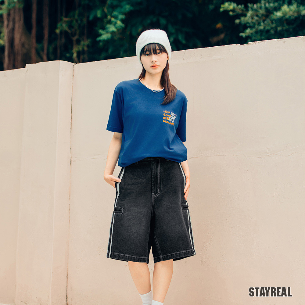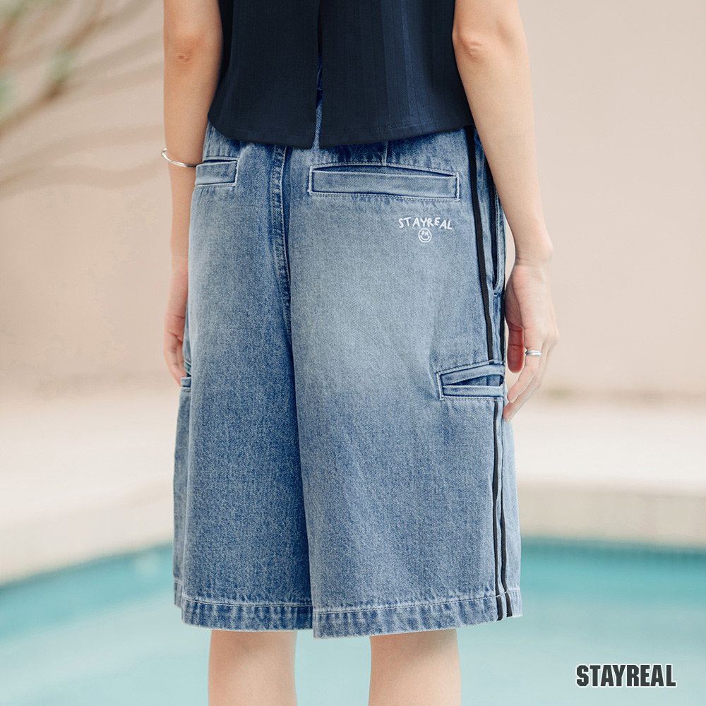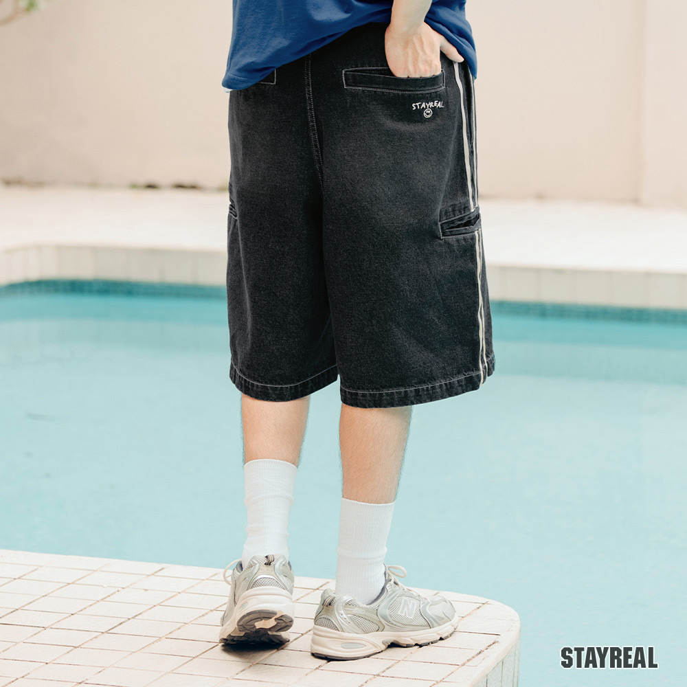 後右口袋下STAYREAL笑臉質感電繡