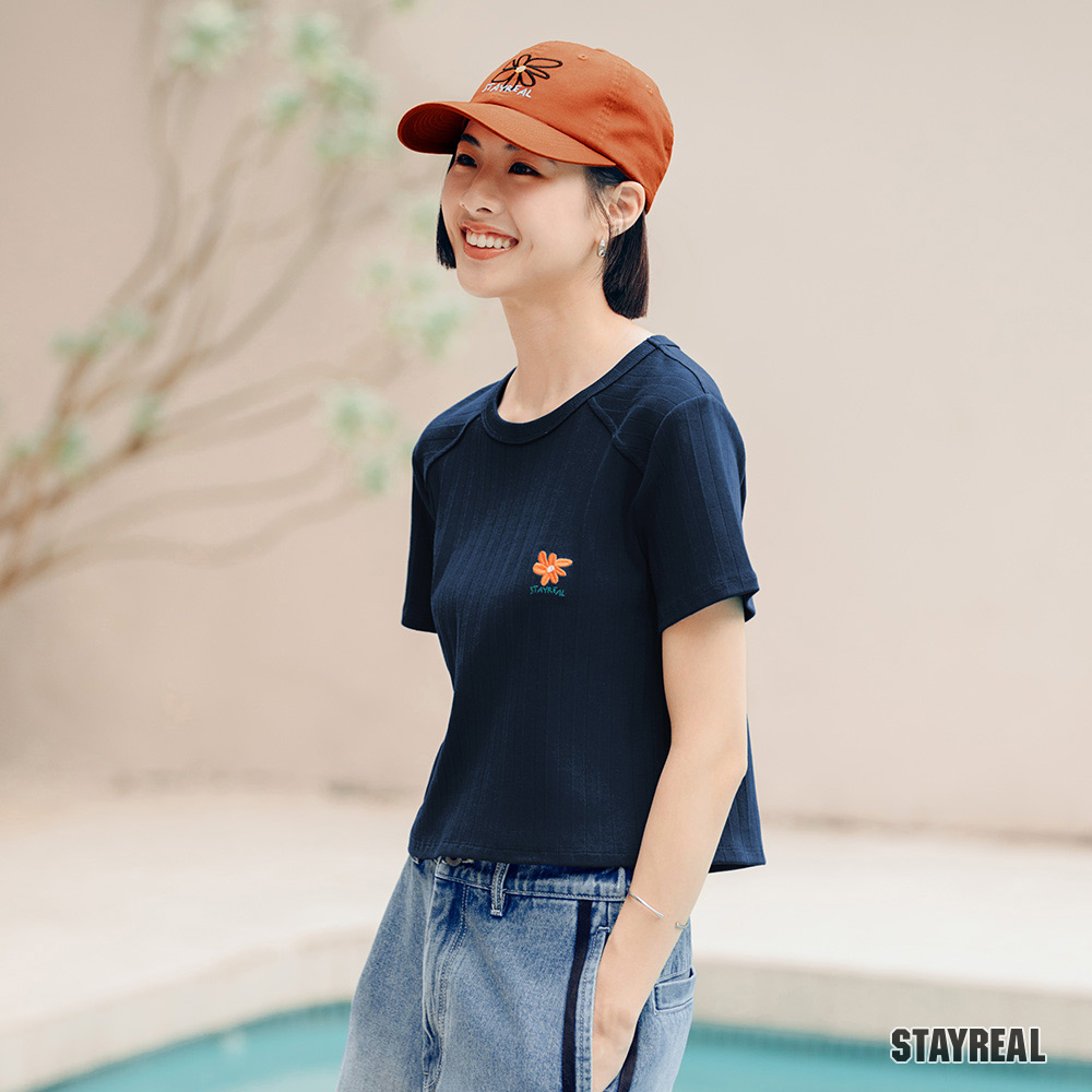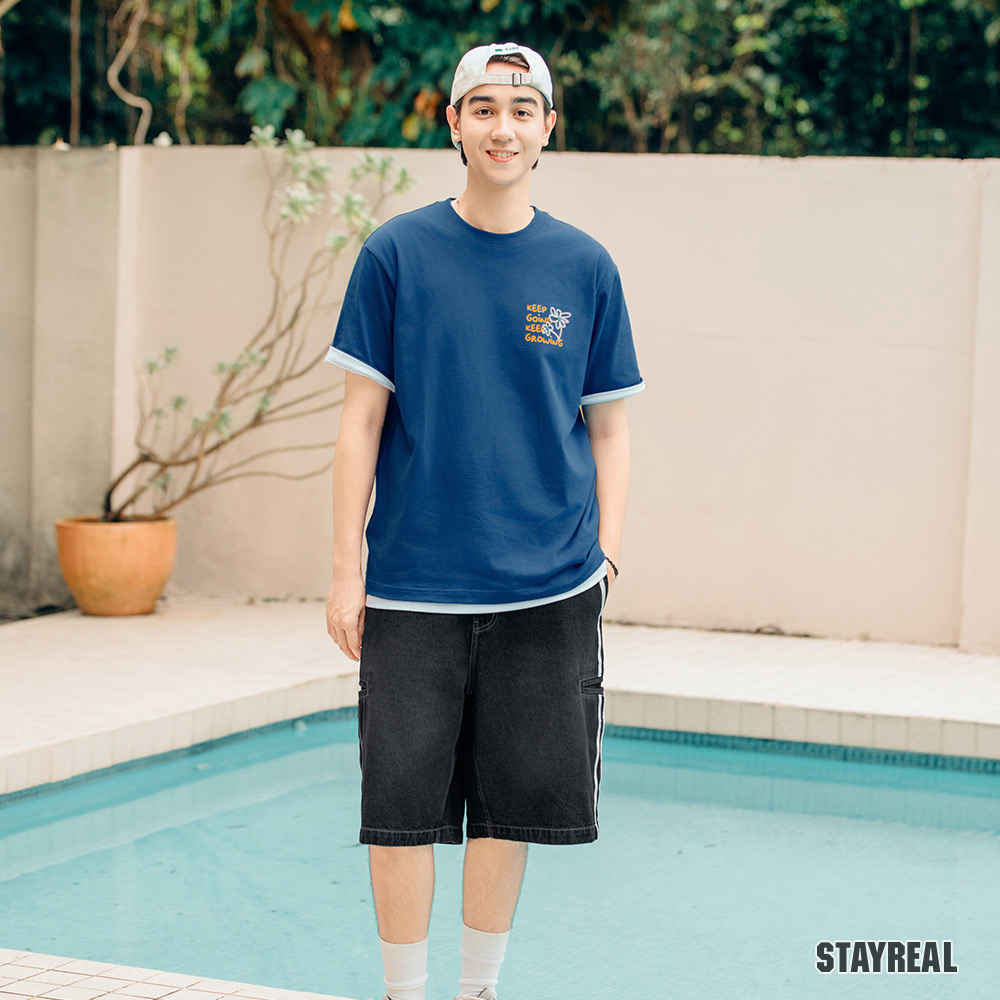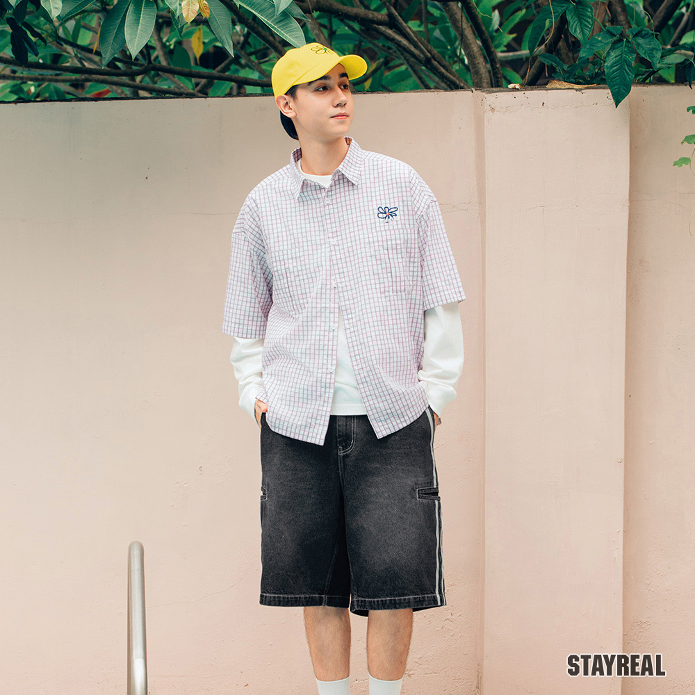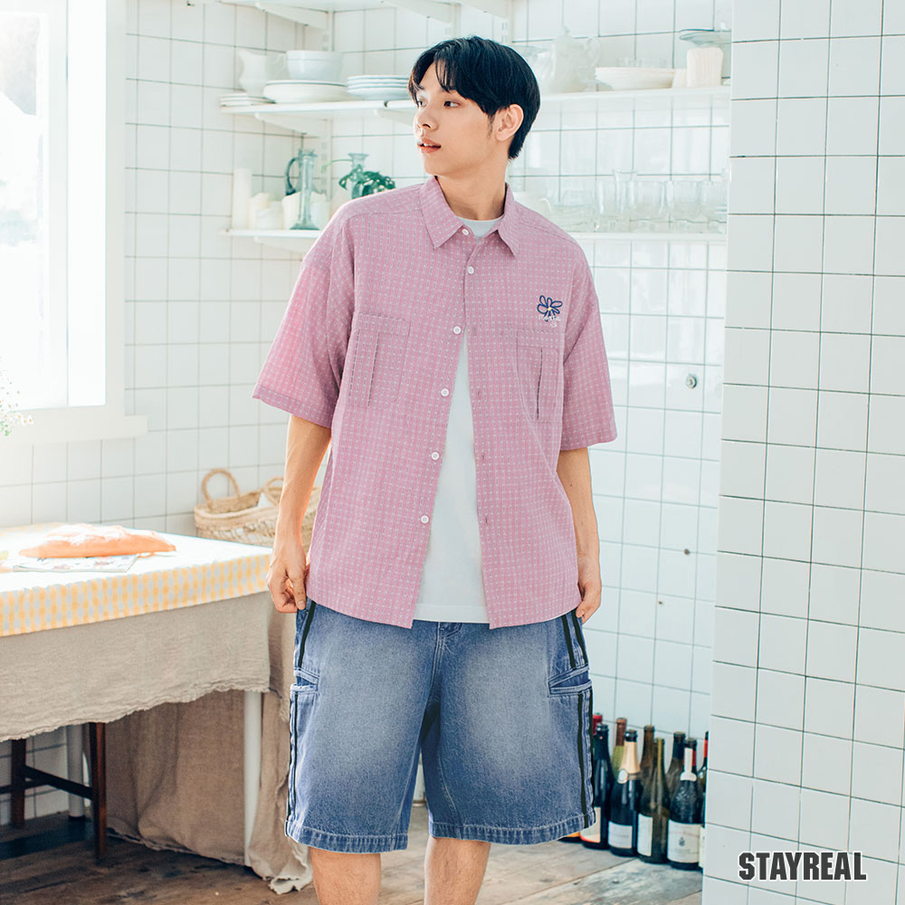 後右口袋下STAYREAL笑臉質感電繡