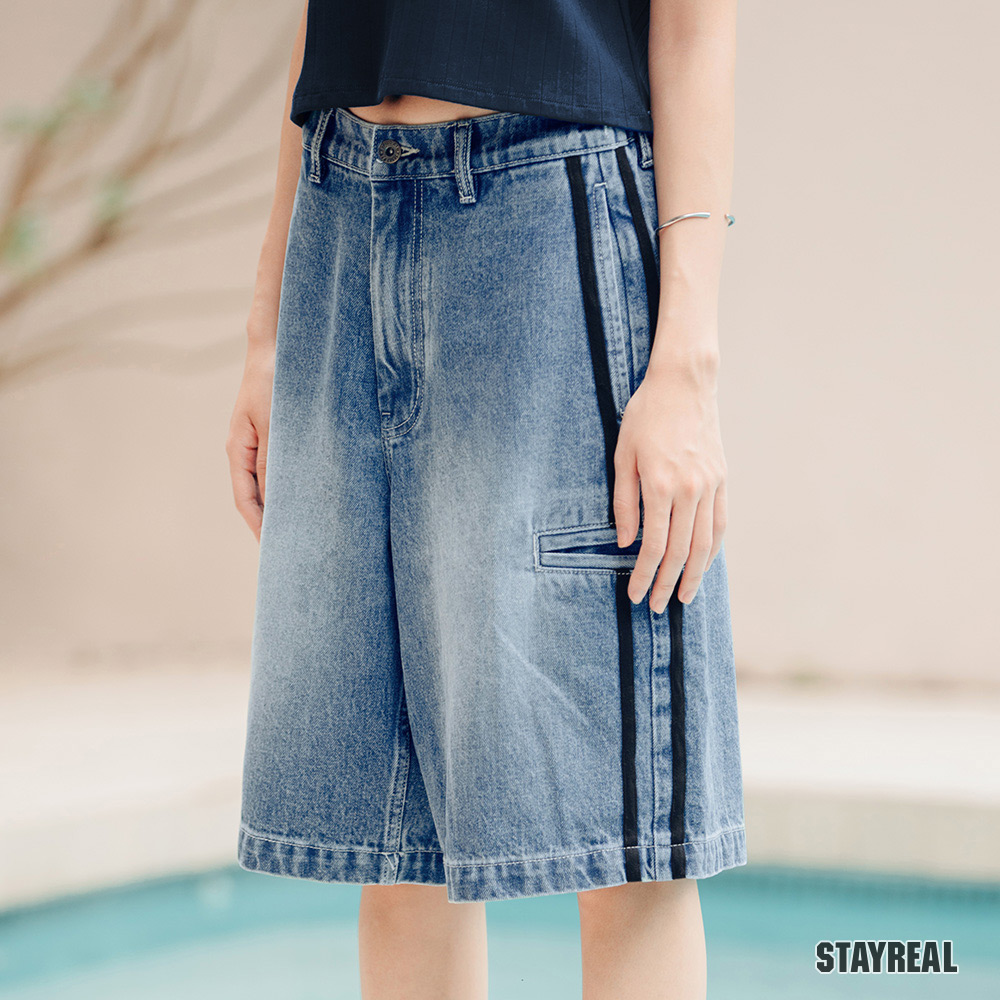 側邊撞色裝飾帶造型設計,多插袋設計,半鬆緊腰頭好穿搭