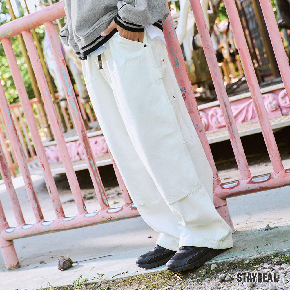 拼接剪裁&鉚釘造型設計,前後皆有多口袋配置