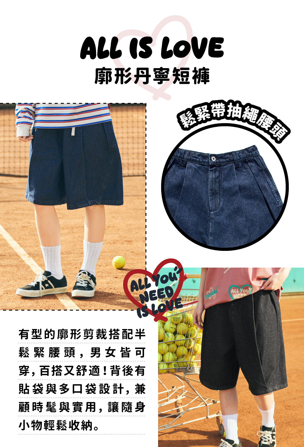 半鬆緊彈性腰頭&內附腰繩設計