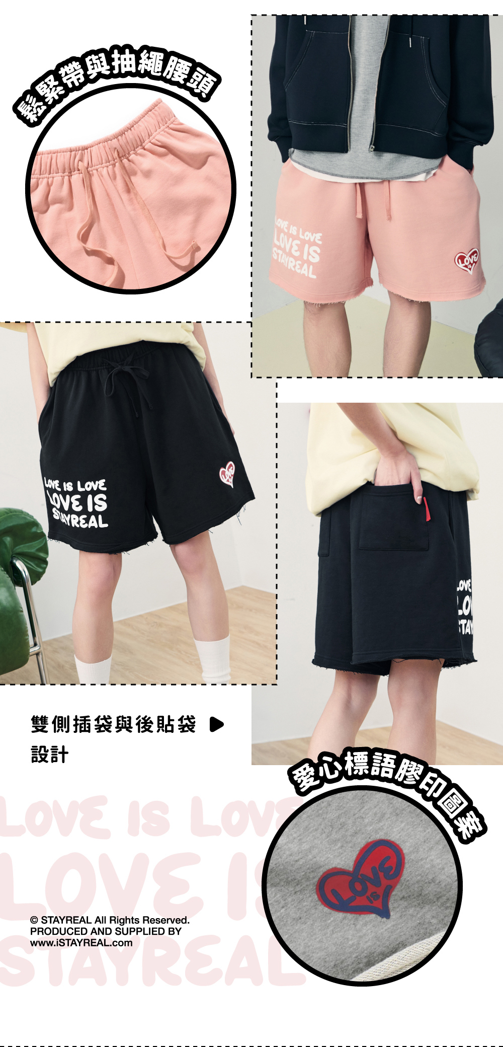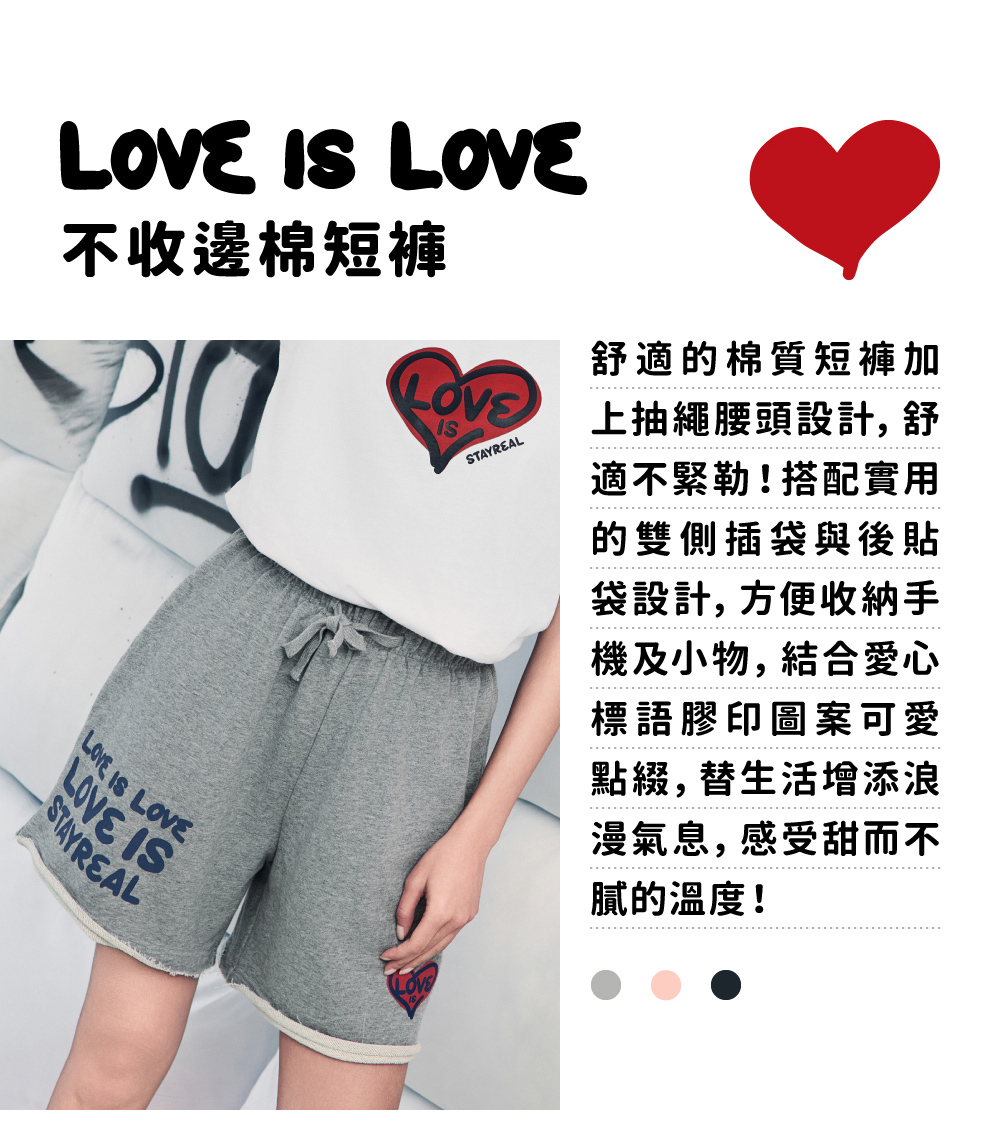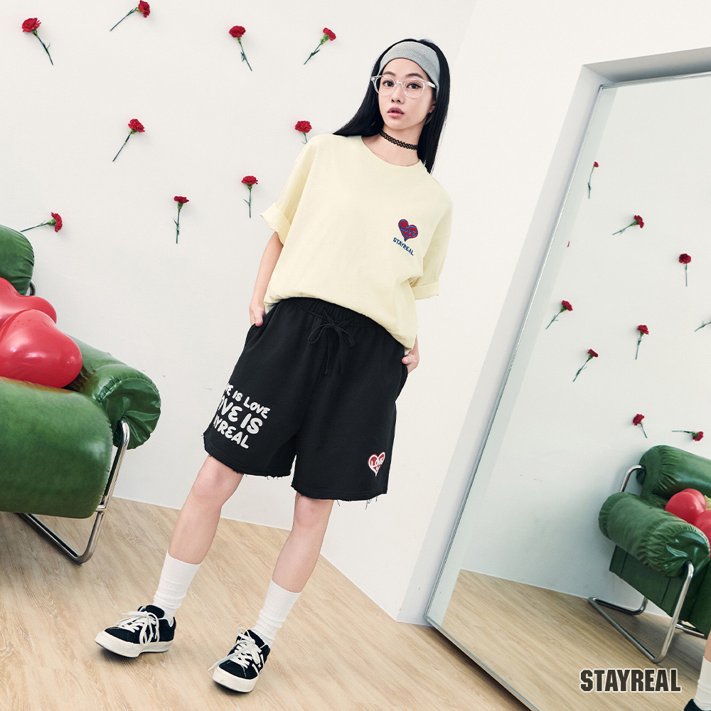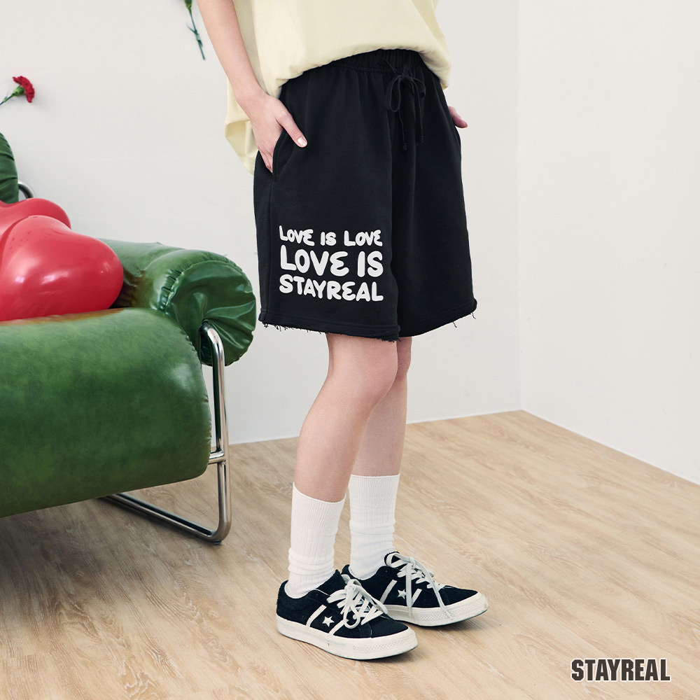 STAYREAL LOVE IS LOVE不收邊棉短褲