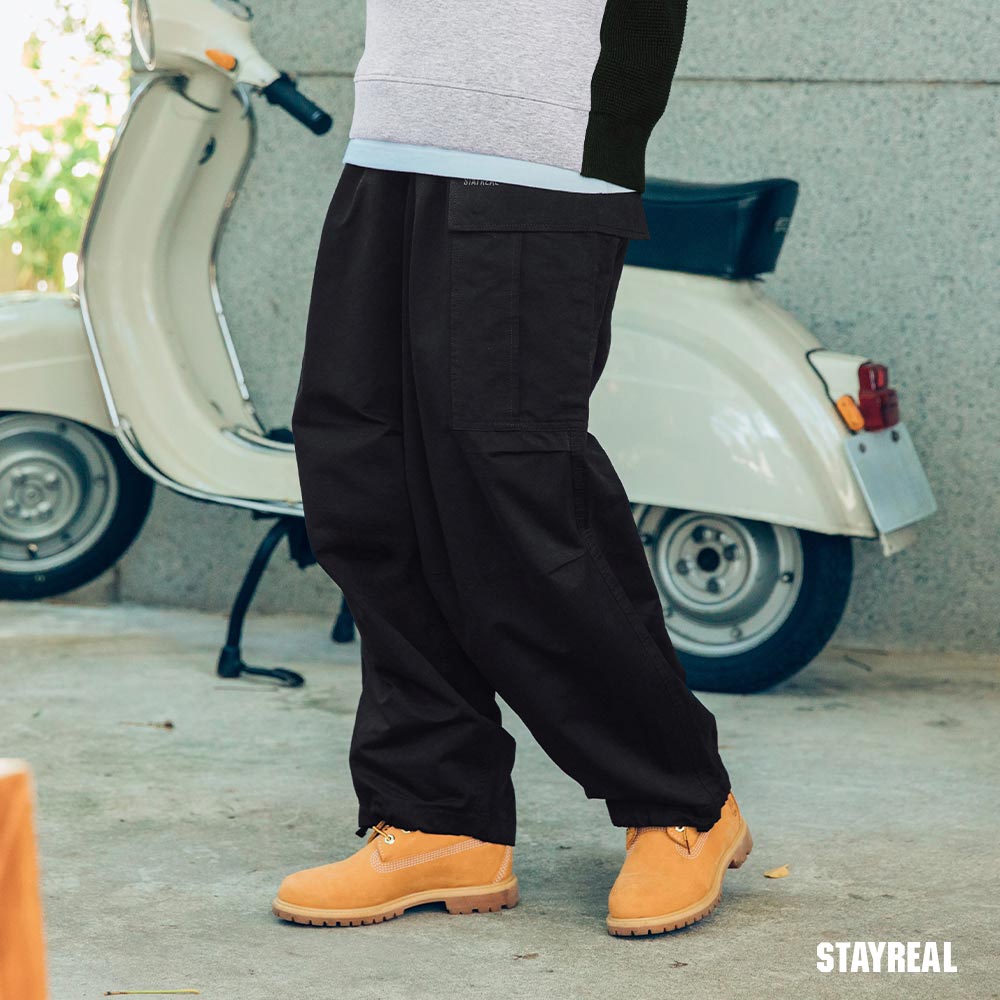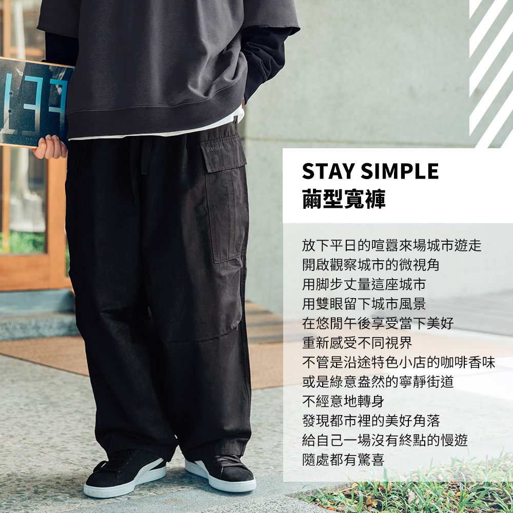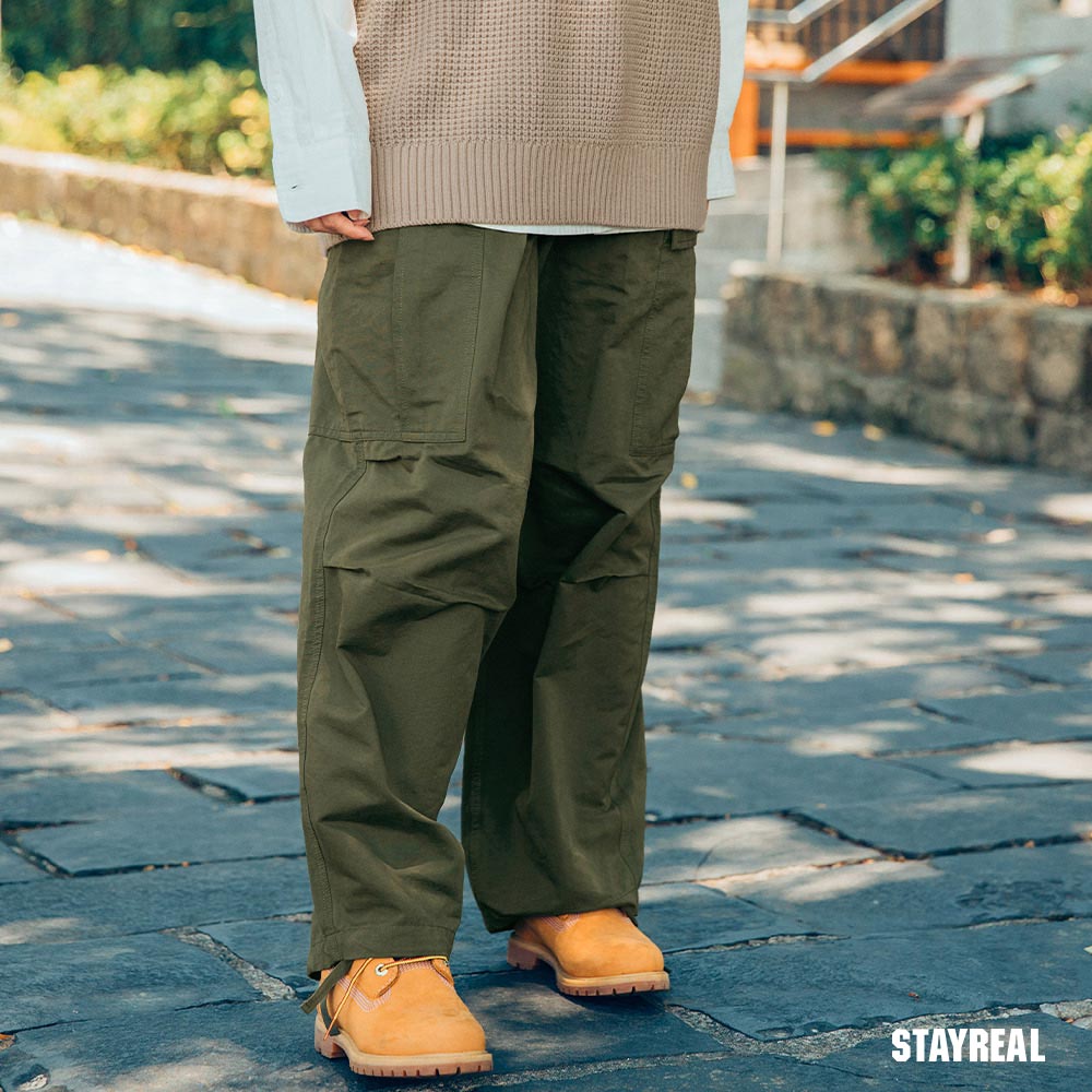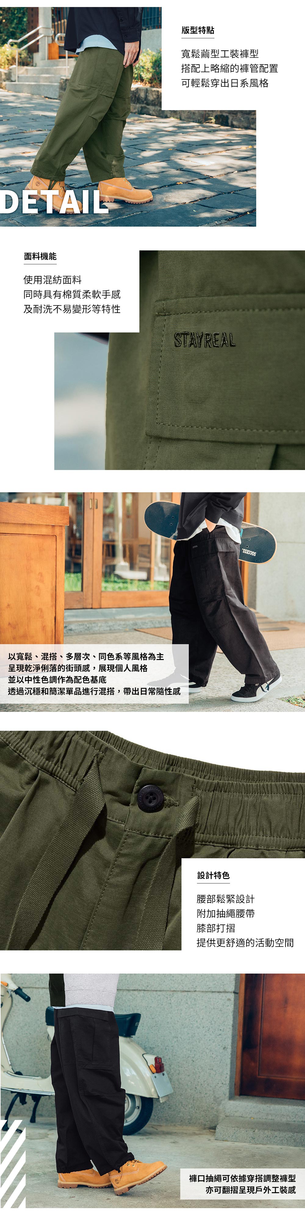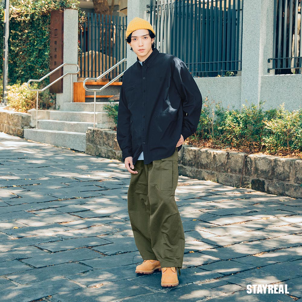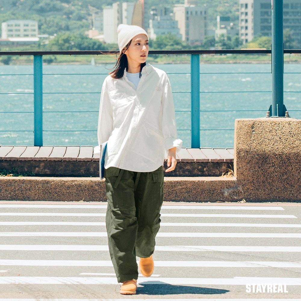 寬鬆繭型工裝褲型,搭配上略縮的褲管配置可輕鬆穿出日系風格