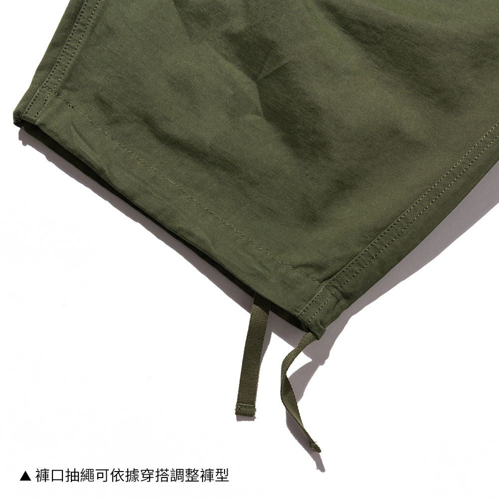 褲口抽繩可依據穿搭調整褲型,亦可翻摺呈現戶外工裝感