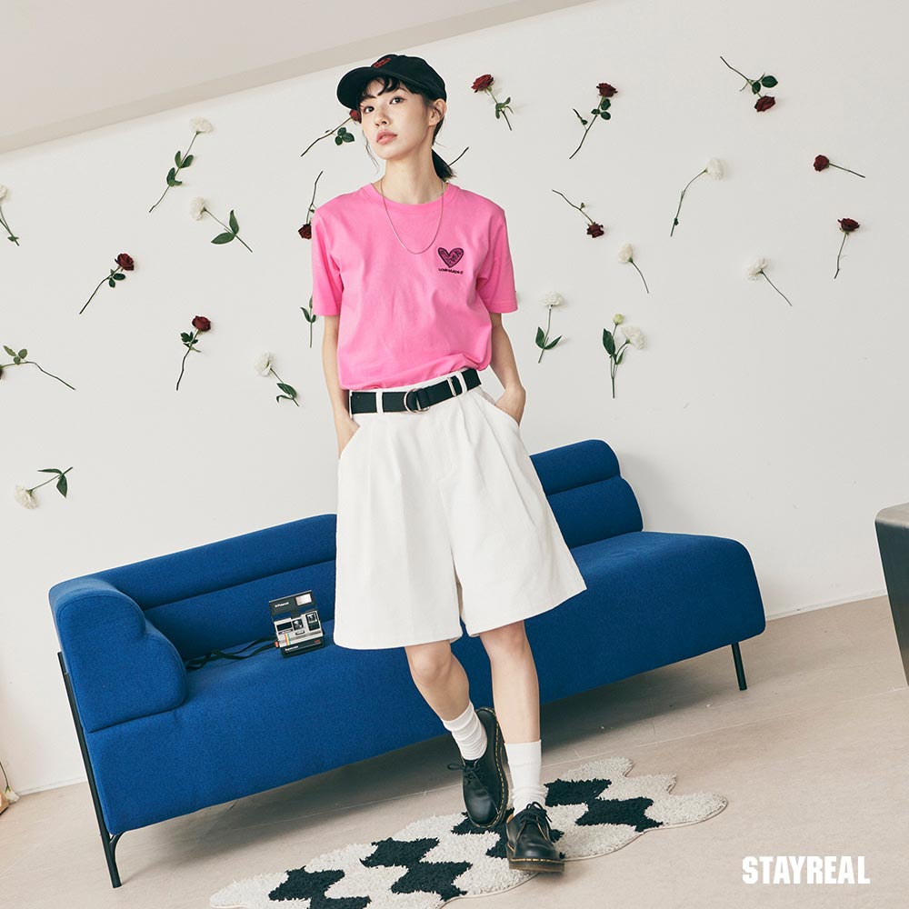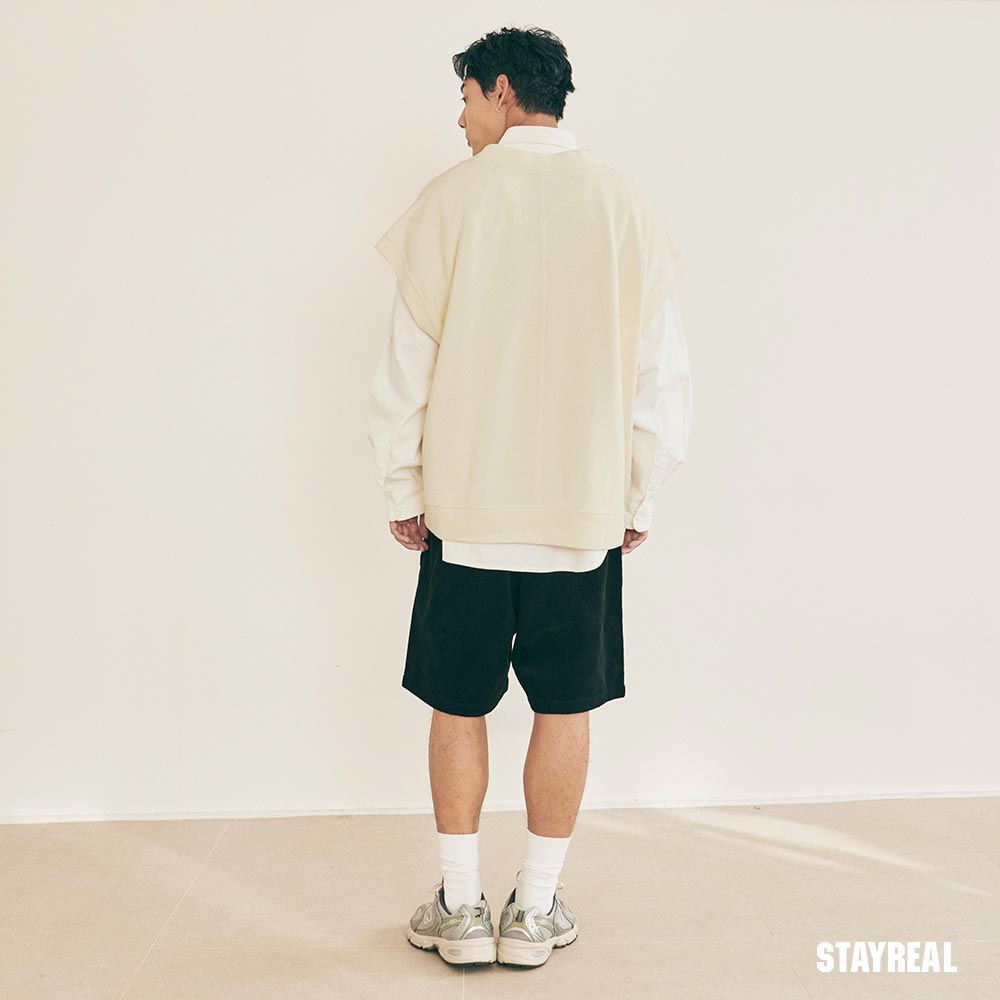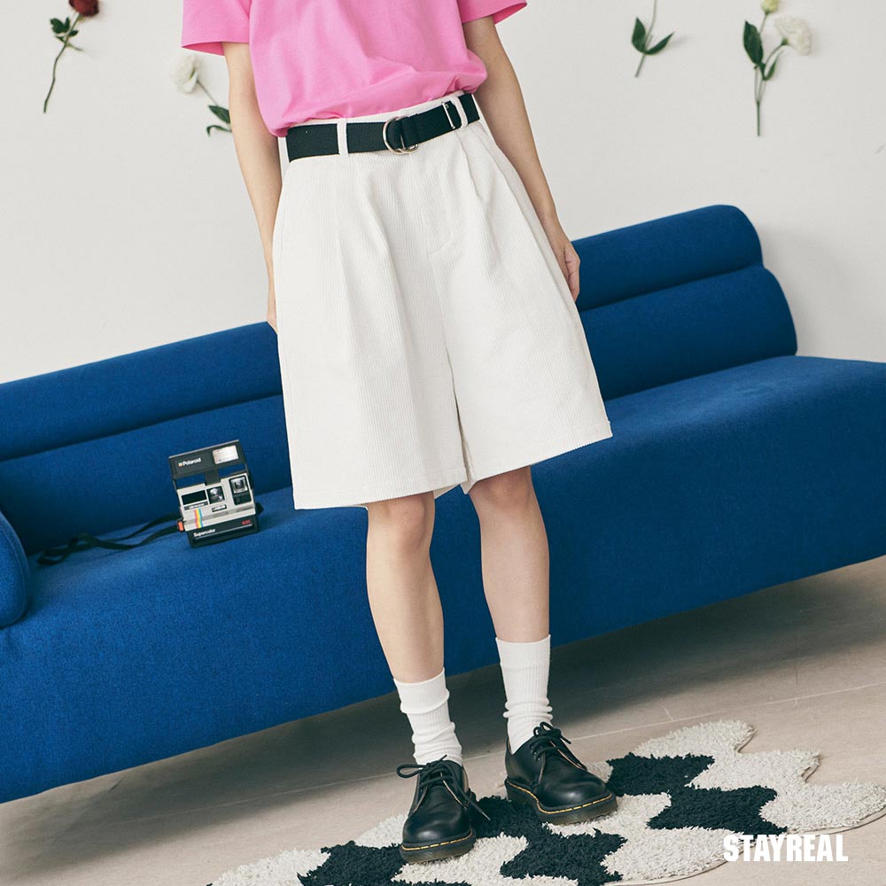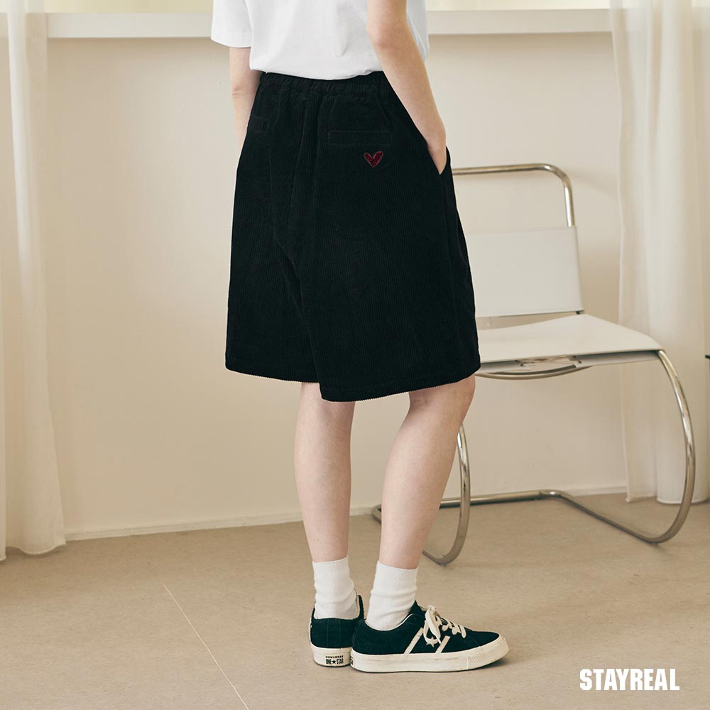 半鬆緊腰頭設計,左右插袋方便放置物品,後片裝飾假口袋