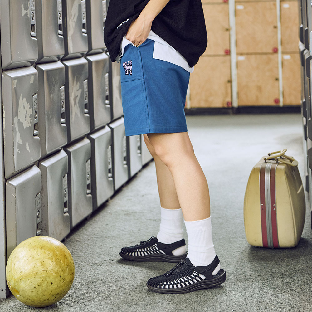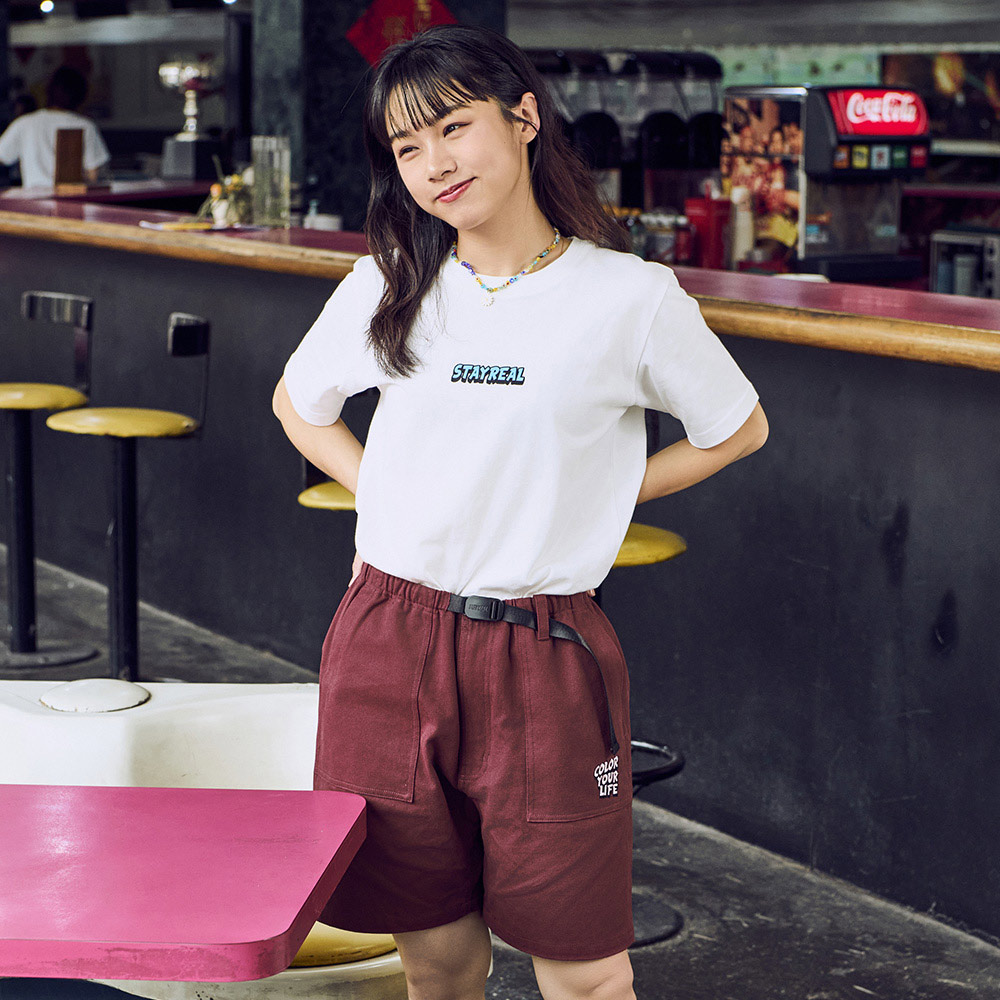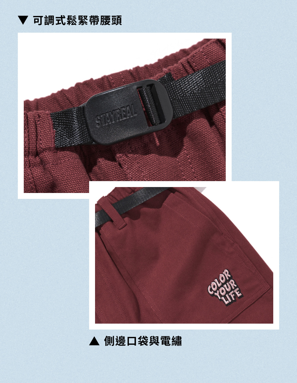 附腰繩設計,腰頭鬆緊帶細節,多口袋方便放置手機及小物品