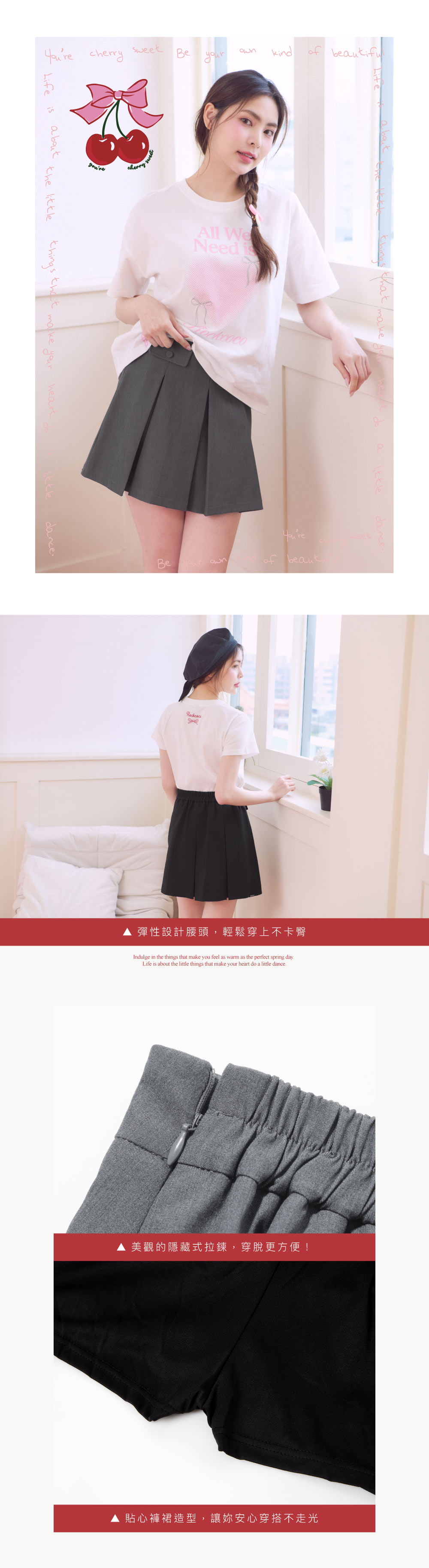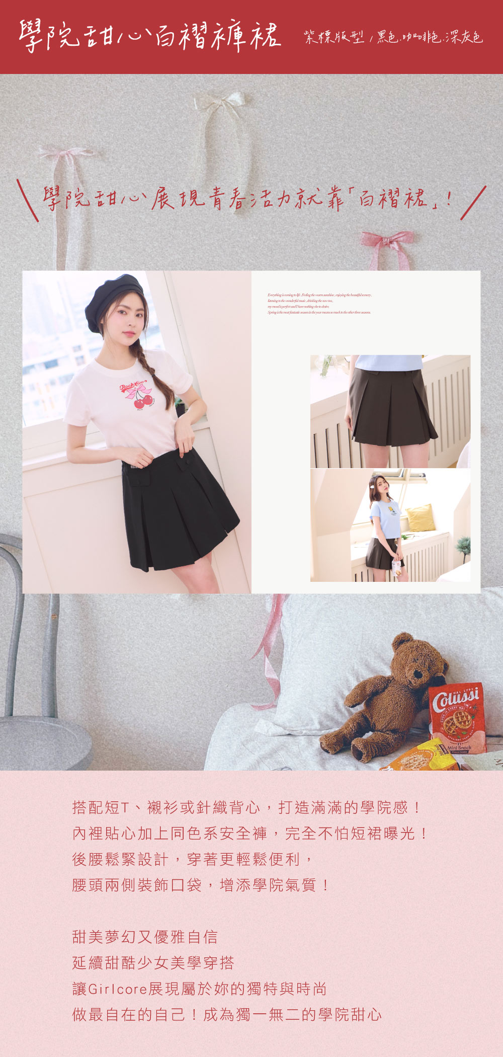 搭配短T、襯衫或針織背心,打造滿滿的學院感!內裡貼心加上同色系安全褲,完全不怕短裙曝光