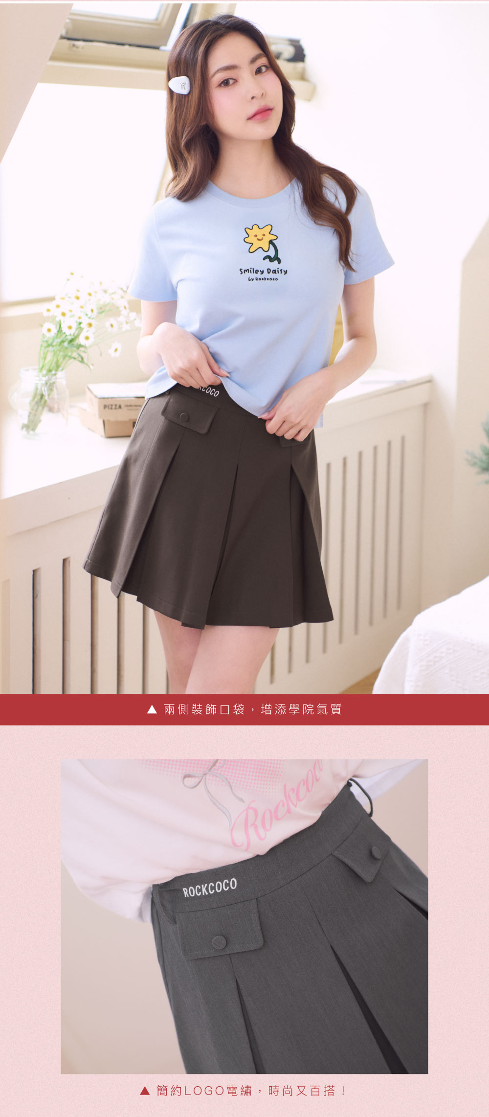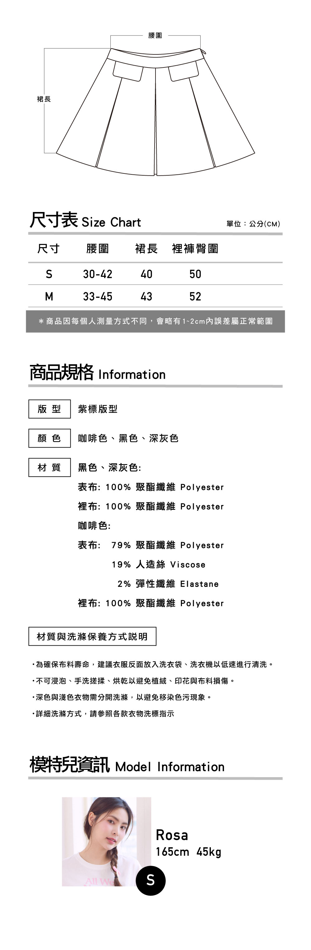 後腰鬆緊設計,穿著更輕鬆便利,腰頭兩側裝飾口袋,增添學院氣質