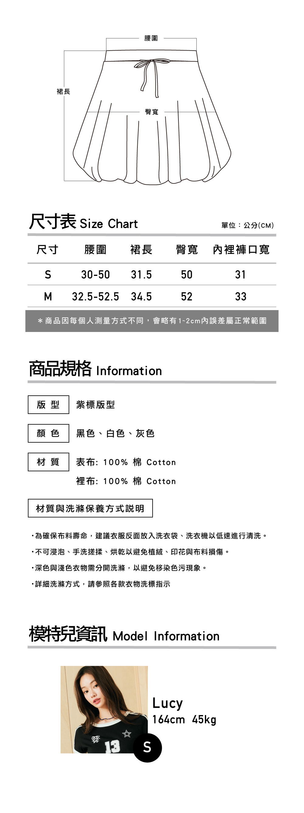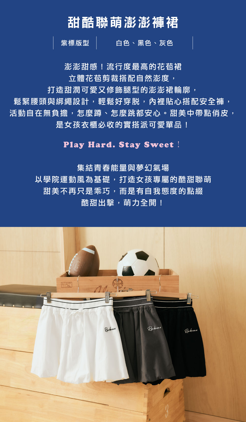立體花苞剪裁搭配自然澎度,打造甜潤可愛又修飾腿型的澎澎裙輪廓,鬆緊腰頭與綁繩設計,輕鬆好穿脫,內裡貼心搭配安全褲,活動自在無負擔,怎麼蹲、怎麼跳都安心。甜美中帶點俏皮,是女孩衣櫃必收的實搭派可愛單品
