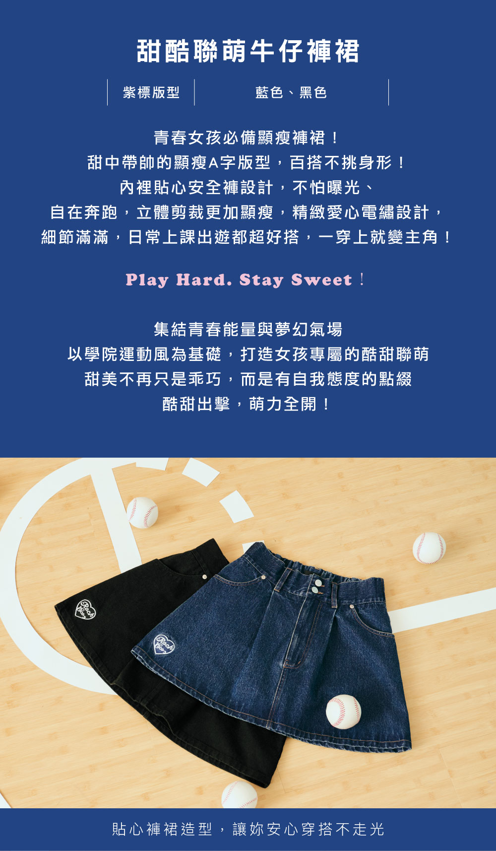 甜中帶帥的顯瘦A字版型,百搭不挑身形!內裡貼心安全褲設計,不怕曝光、自在奔跑,立體剪裁更加顯瘦,精緻愛心電繡設計,細節滿滿,日常上課出遊都超好搭,一穿上就變主角