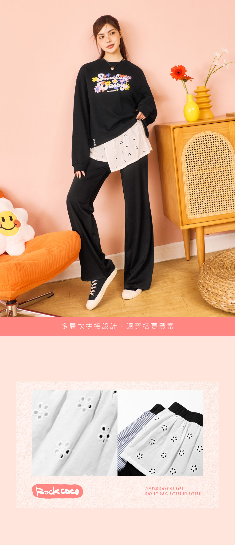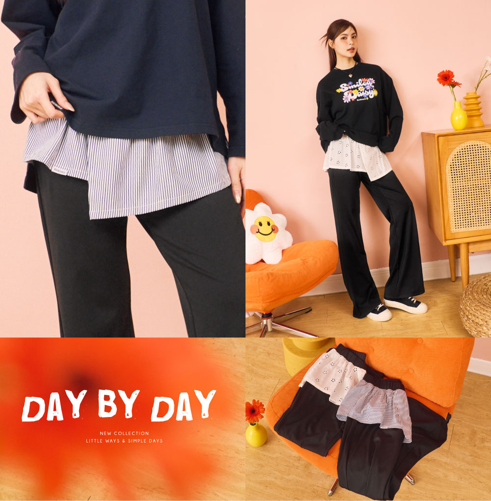 顯瘦又顯高的神級剪裁!搭配蕾絲/條紋兩種拼接裙片,打造多層次的穿搭風格,布料柔軟、彈性佳,穿上親膚透氣不緊繃,是日常通勤與休閒穿搭的完美單品,無論想走簡約氣質或甜美可愛,都能輕鬆駕馭,是一件一穿就回不去的百搭褲款