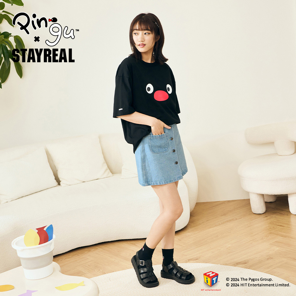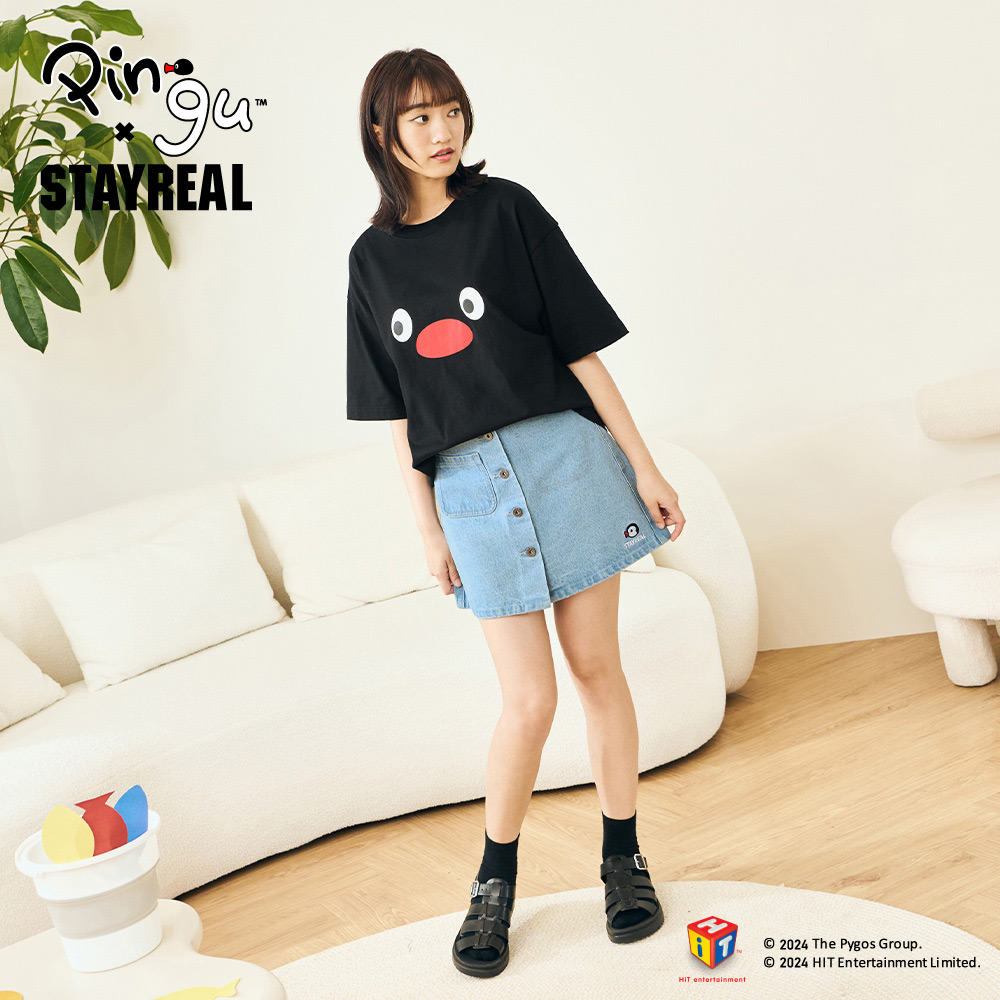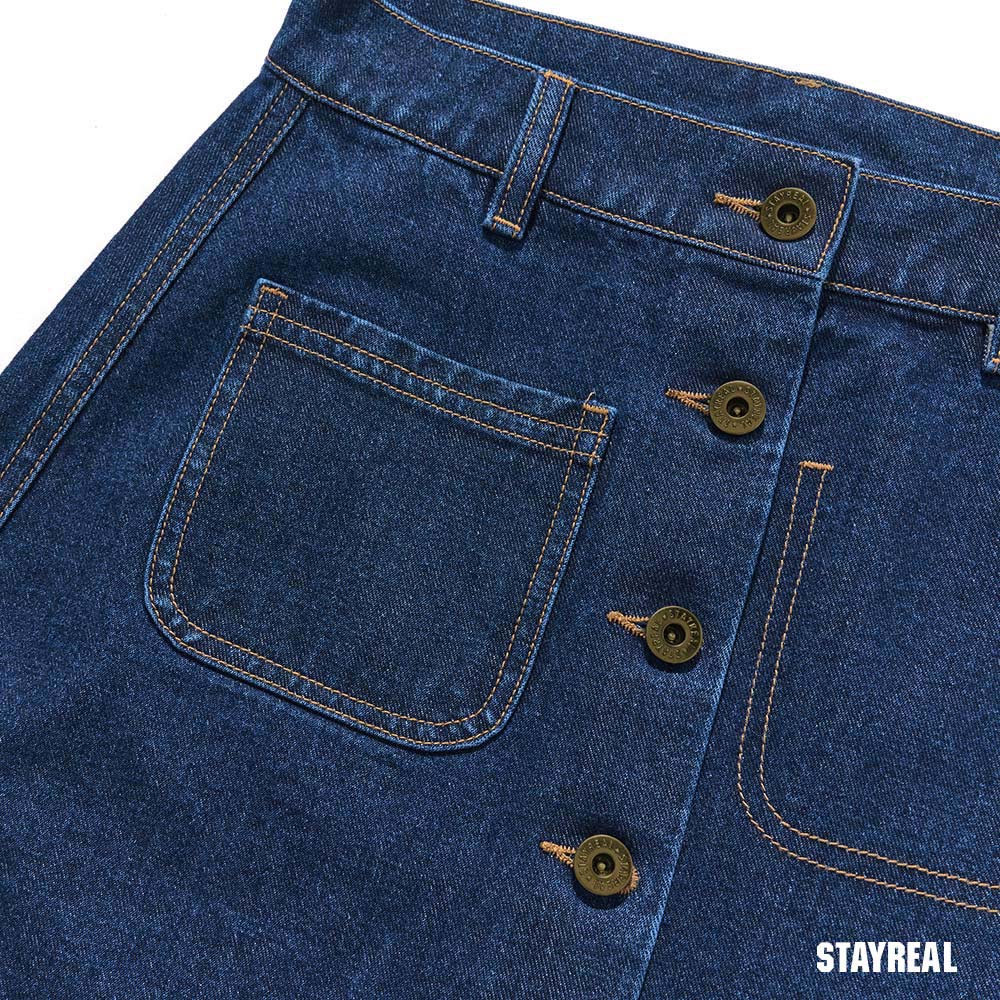 經典刷色的丹寧面料,上窄下寬的A字型版型,讓腰身看起來更纖細,修飾大腿線條