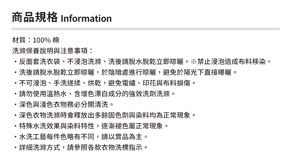 100%純棉斜紋牛仔面料,採用優質棉紗及染色技術,顏色褪落錯落有致更顯自然