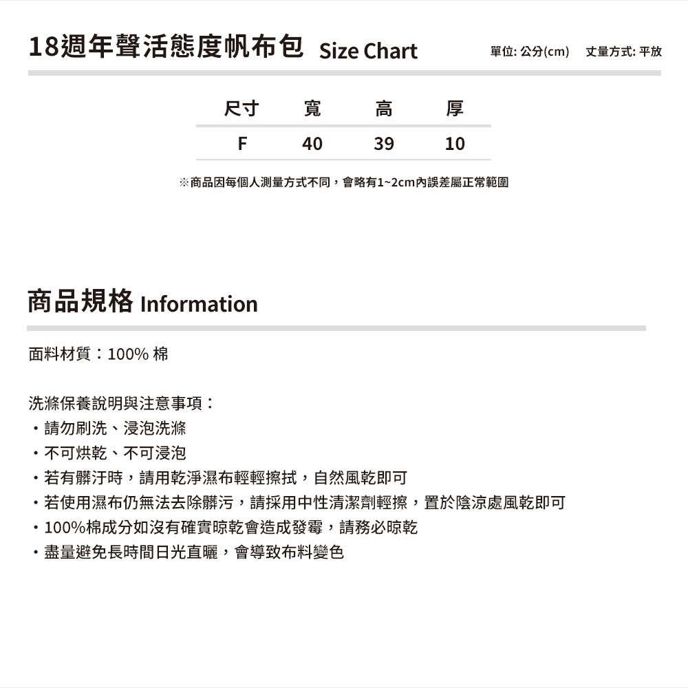 內含:18週年聲活態度限定Tx1件、18週年聲活態度帆布包x1只