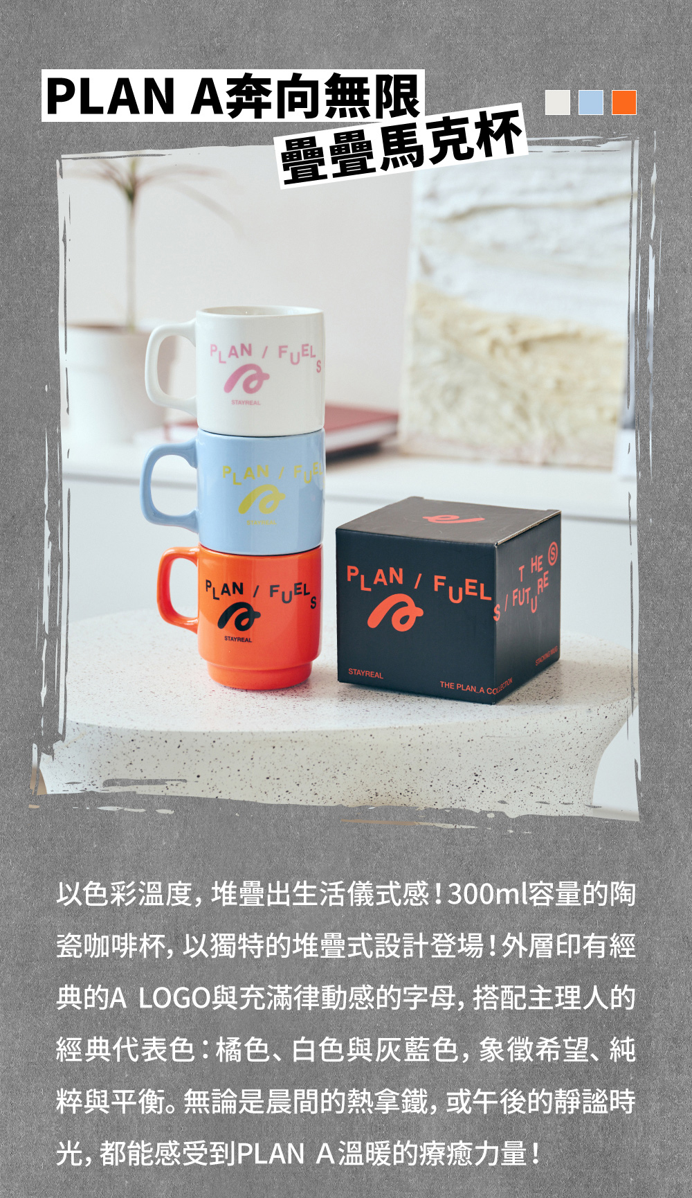 300ml容量,造型特別設計具有能夠堆疊放置的功能,一次推出三個顏色,推疊擺放後能呈現豐富的色彩質感