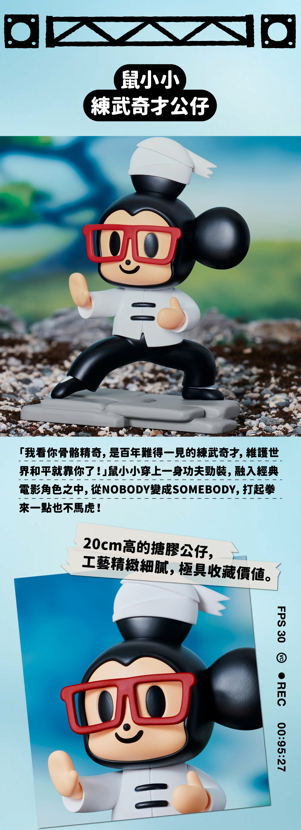 「我看你骨骼精奇,是百年難得一見的練武奇才,維護世界和平就靠你了!」鼠小小穿上一身功夫勁裝,融入經典電影角色之中,打起拳來一點也不馬虎
