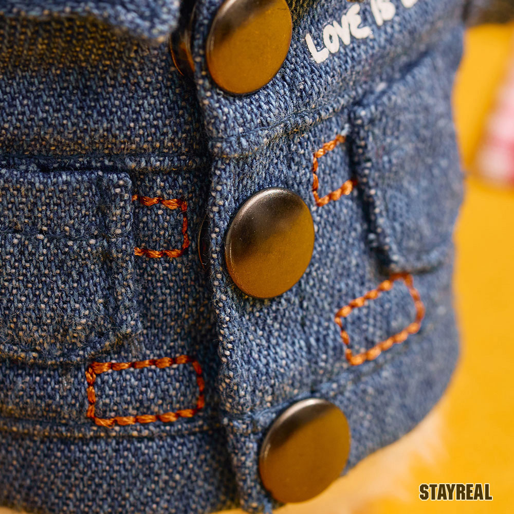 藍色牛仔襯衫附上小釦子方便穿脫,完整復刻縮小版,背面開洞讓尾巴露出