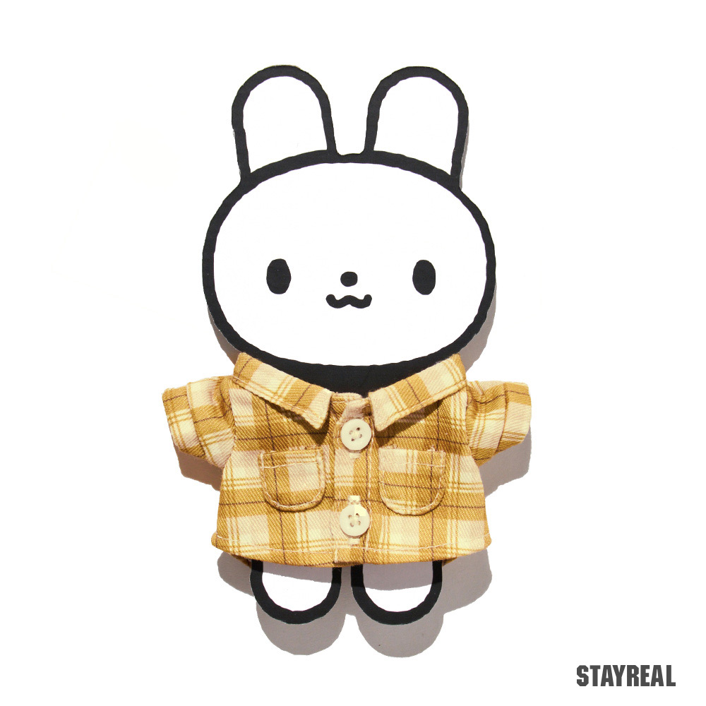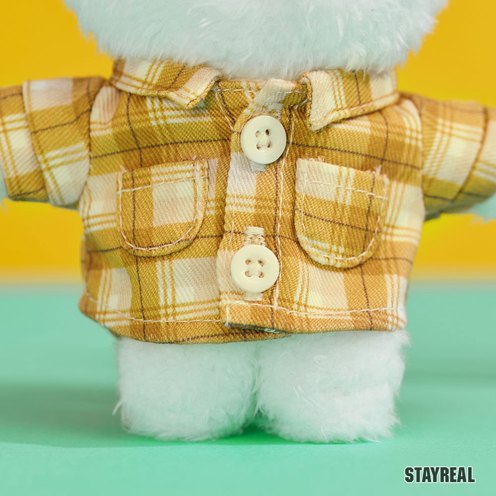 黃色格紋襯衫附上小鈕釦方便穿脫,完整復刻縮小版,背面做燕尾開岔方效果便尾巴露出