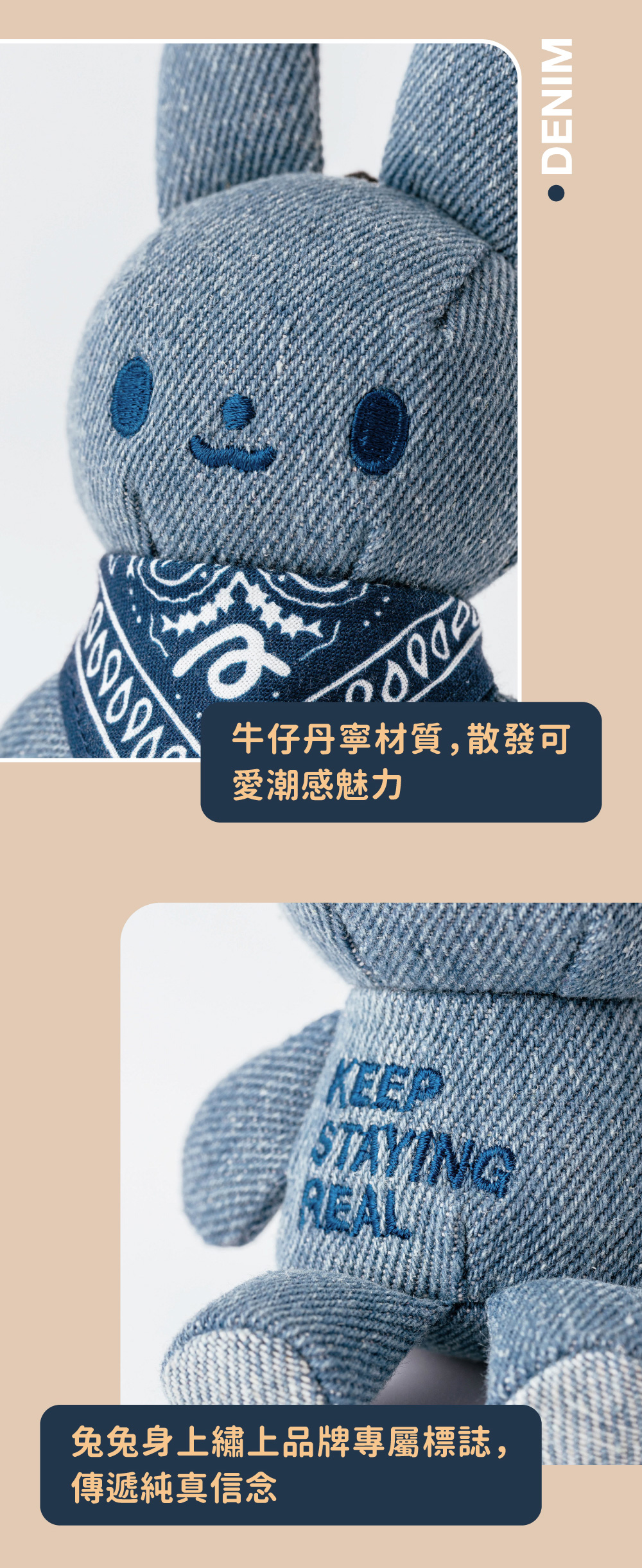 兔子身上帶有電繡標語,身上配件皆為可拆卸