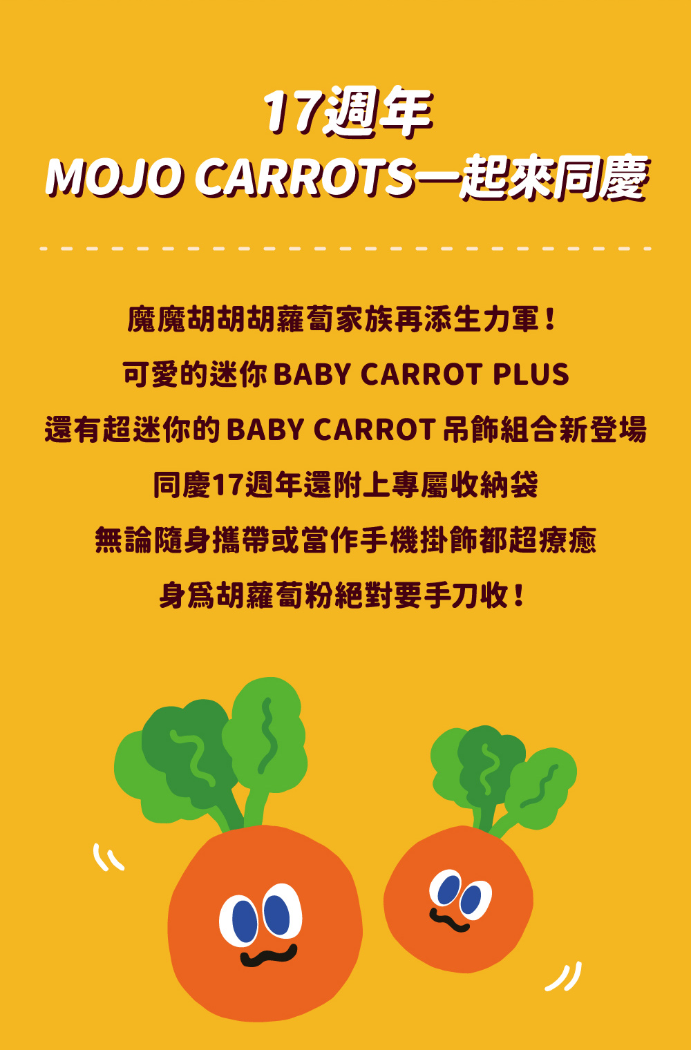 內含:BABY CARROT吊飾x1件、BABY CARROT PLUS 吊飾x1件、MOJO FAMILY 束口收納袋x1只