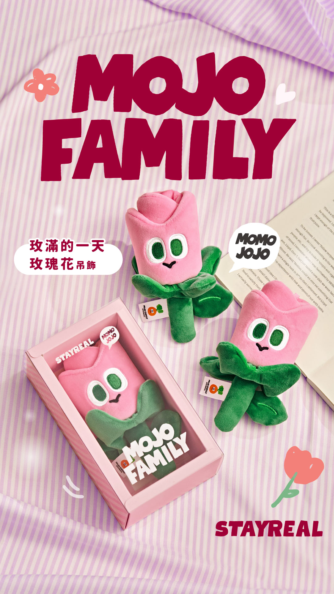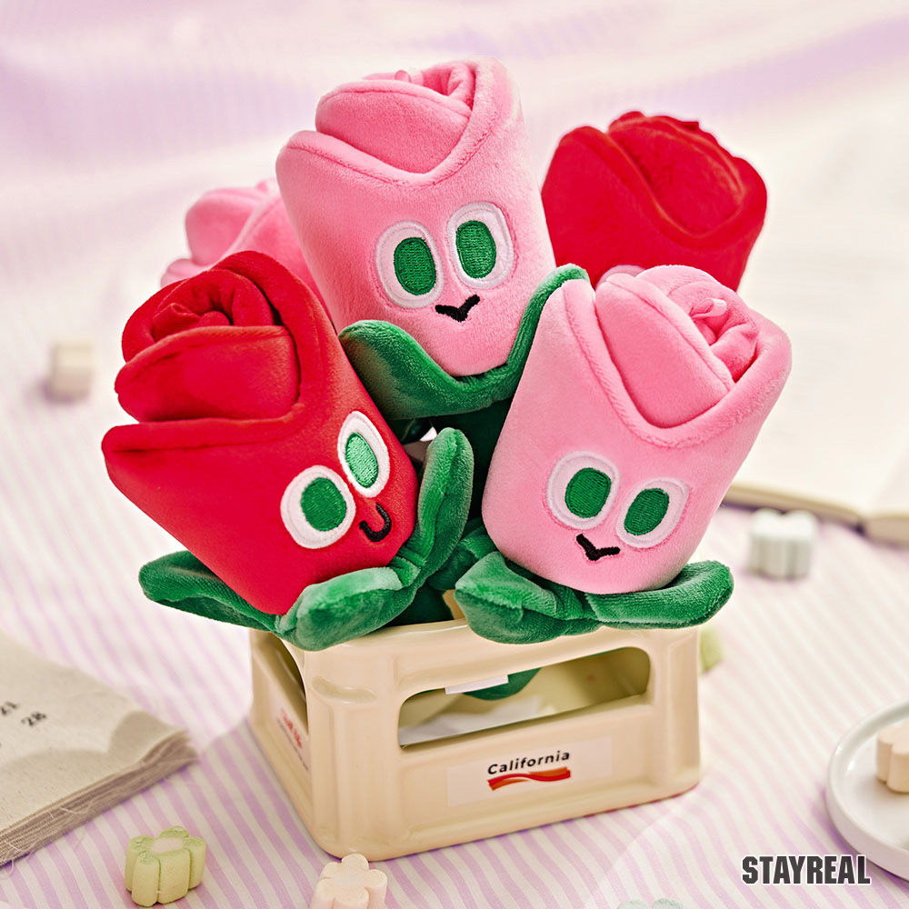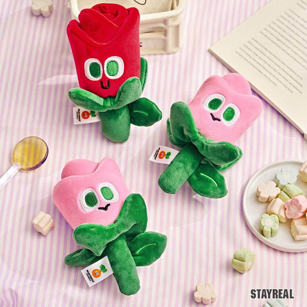 15cm高,玫瑰花造型絨毛公仔,附上金屬吊飾,可隨身攜帶的療癒小物保鮮不凋零