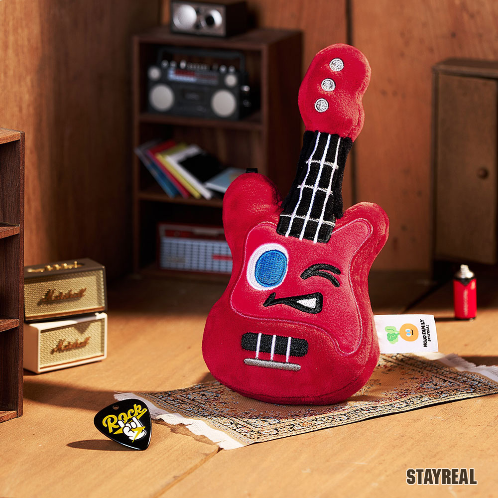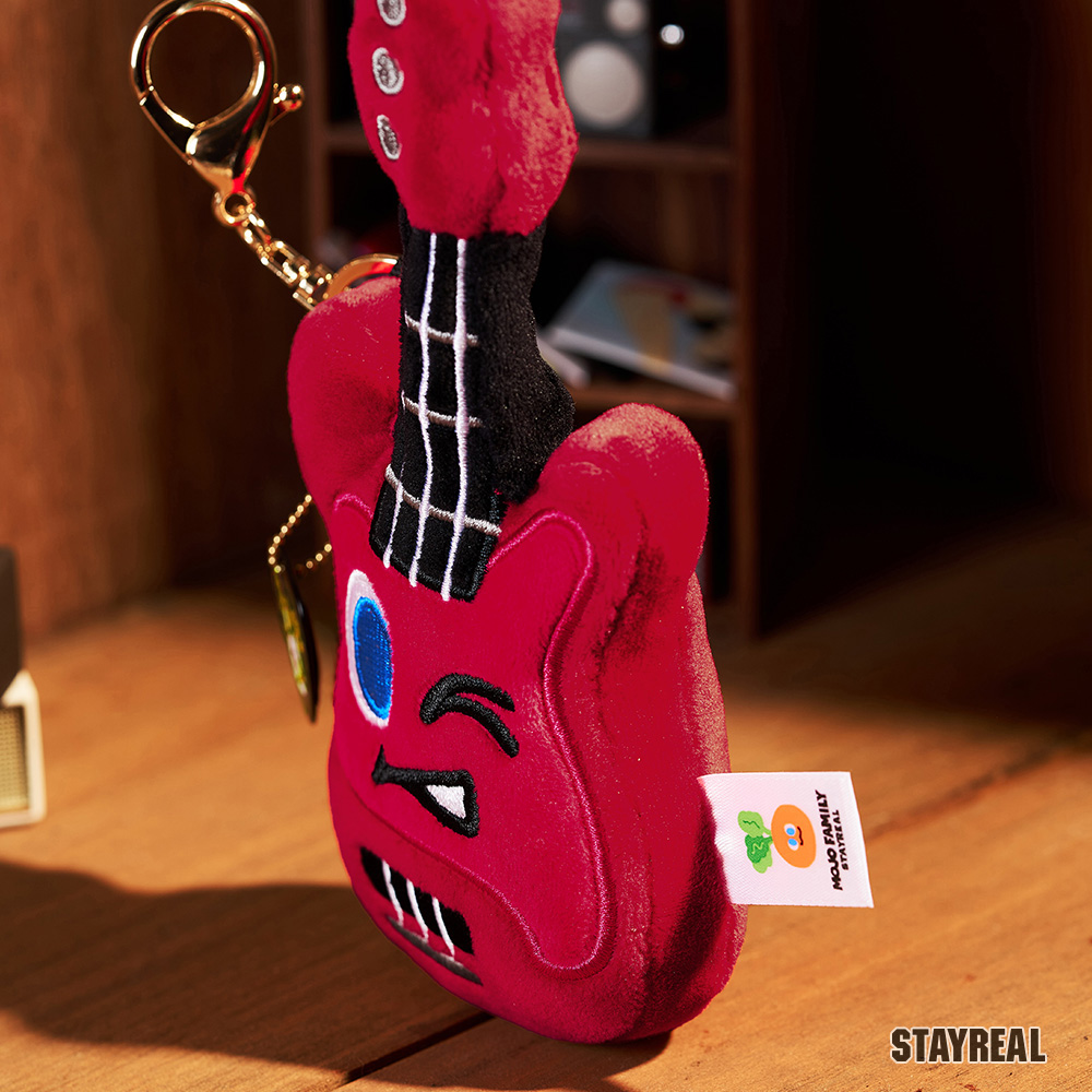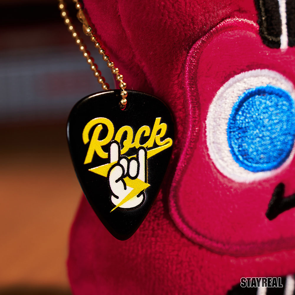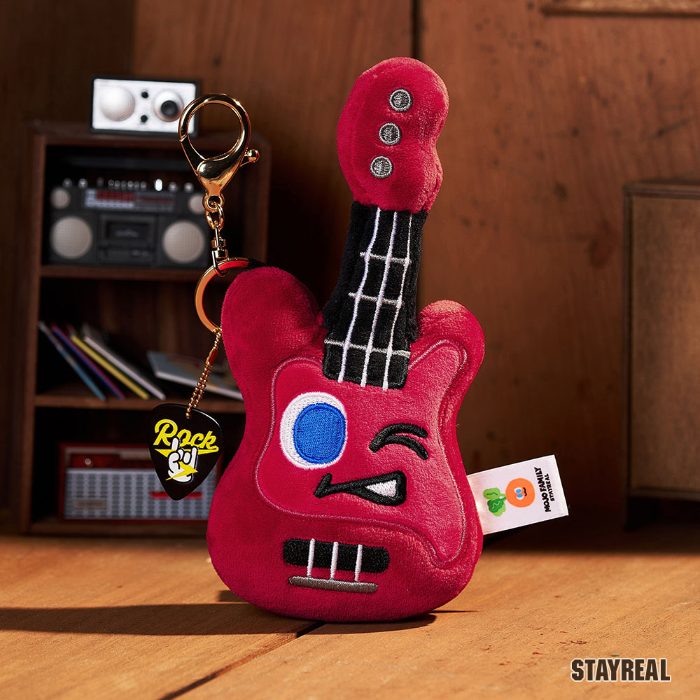貝斯造型絨毛公仔,附上金屬吊飾及專屬pick,可隨身攜帶的療癒小物