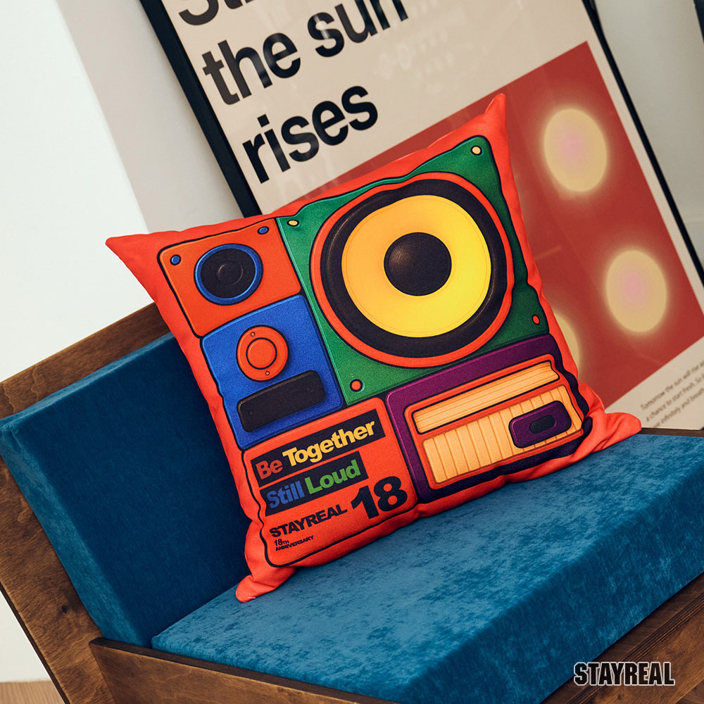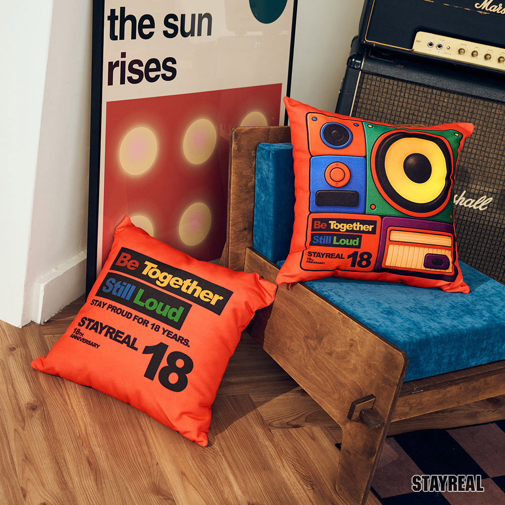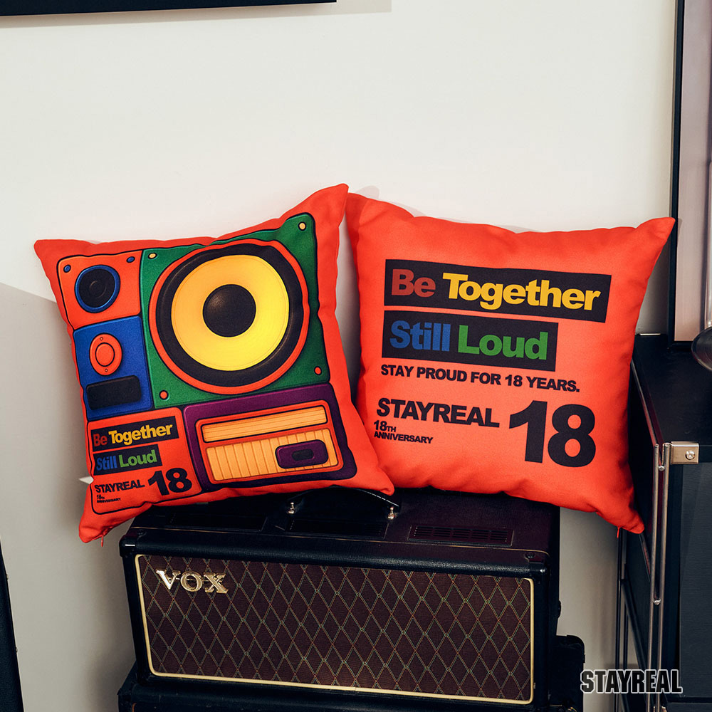 正面以STAYREAL =STEREO品牌精神,以STEREO立體聲道為你發聲,堆疊音響元件組合出專屬於你的「聲」活態度!背面以Be Together, Still Loud的搖滾精神,傳達18年來一貫的驕傲!
