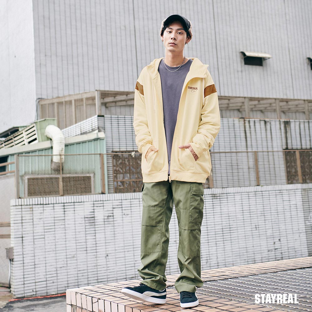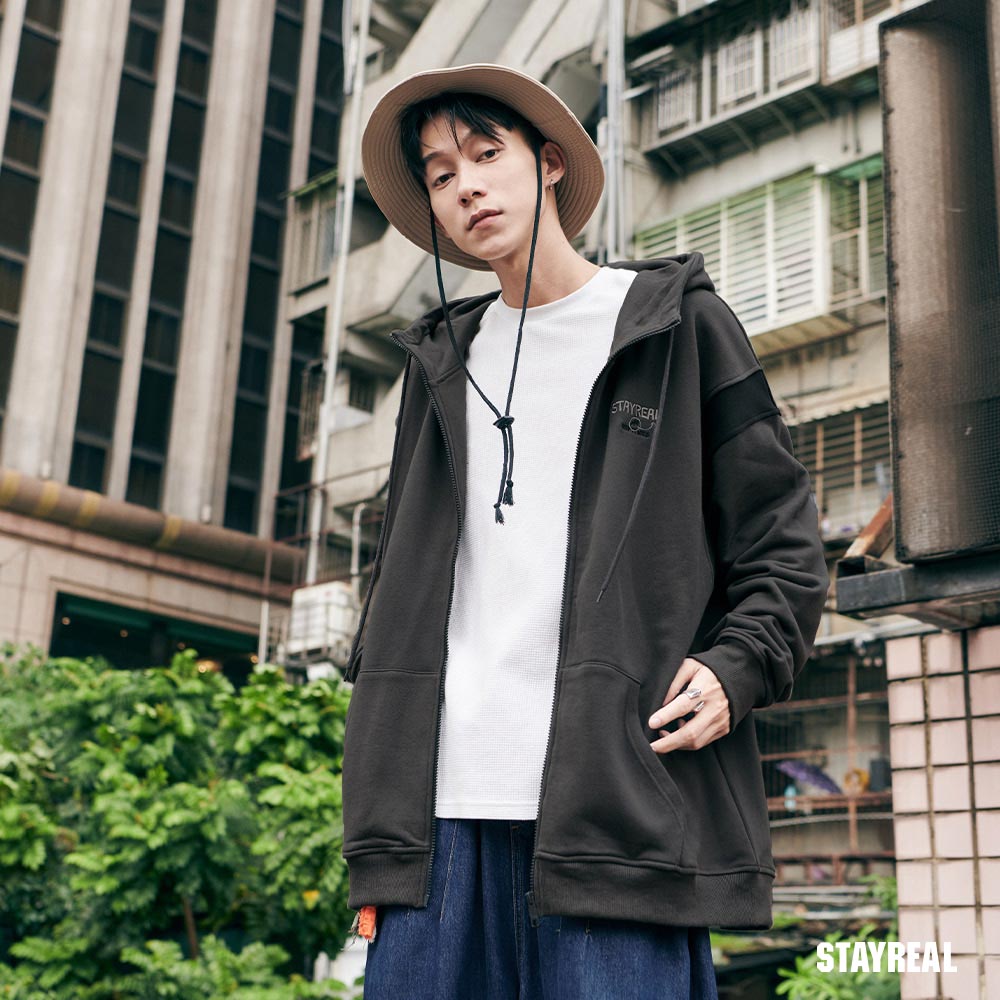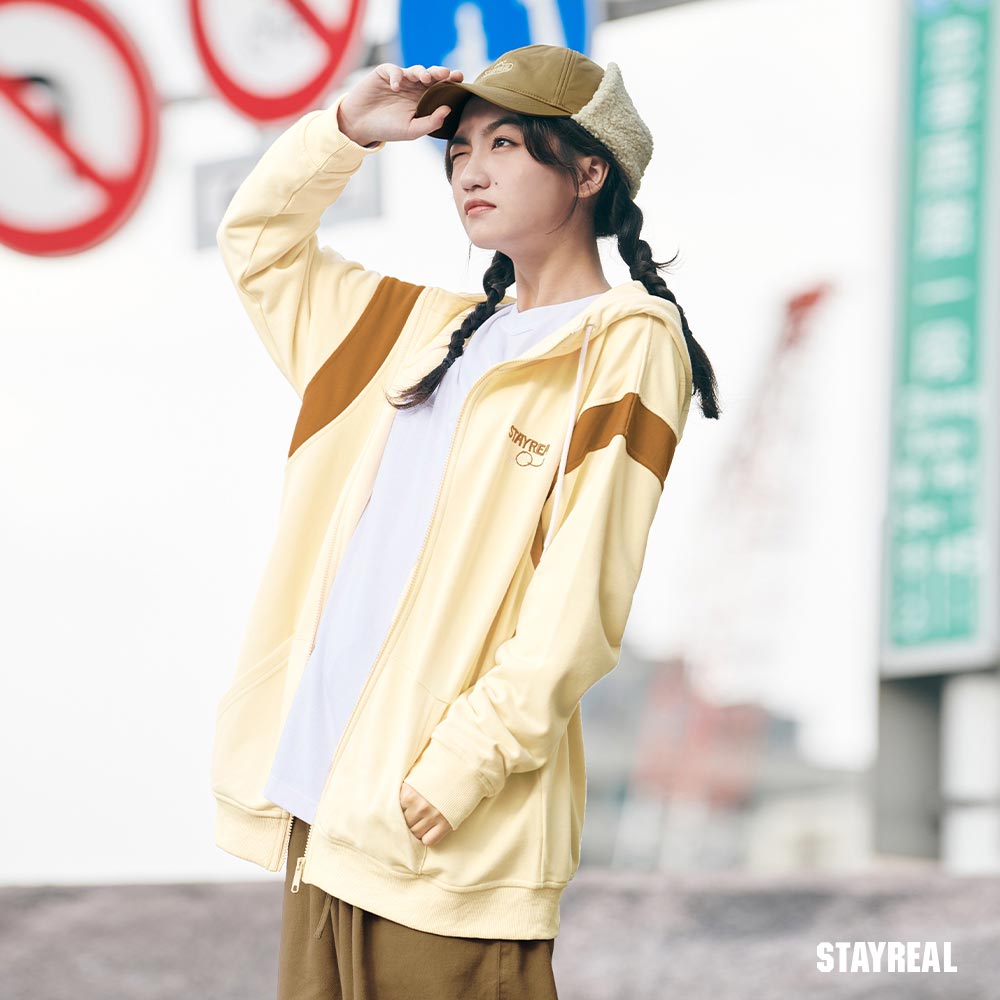 袖襱拼接撞色造型,凸顯率性感讓連帽外套變得更加時髦