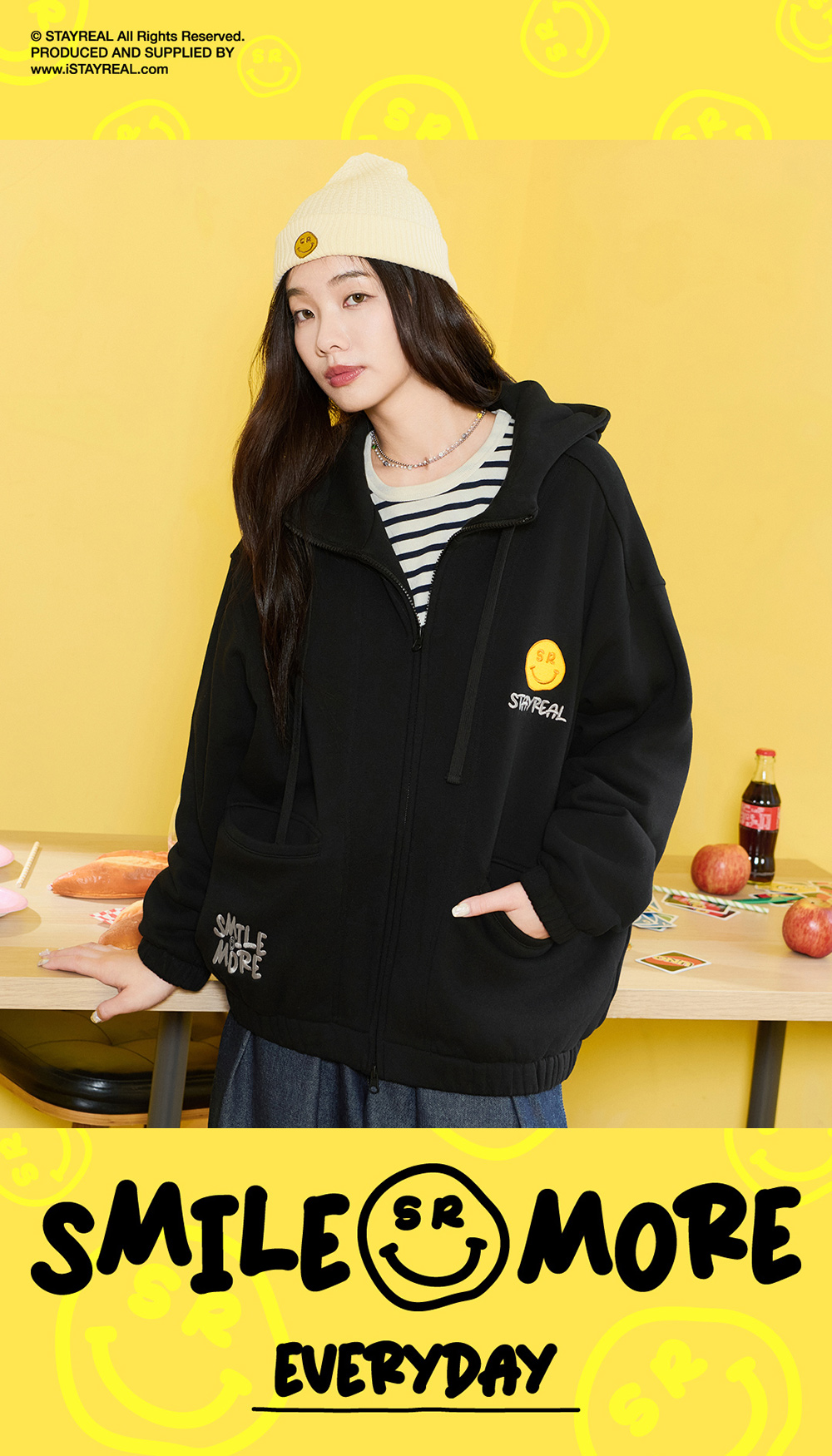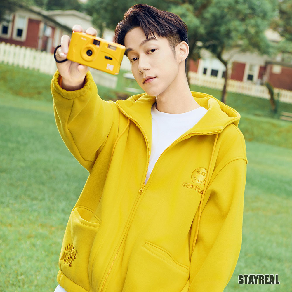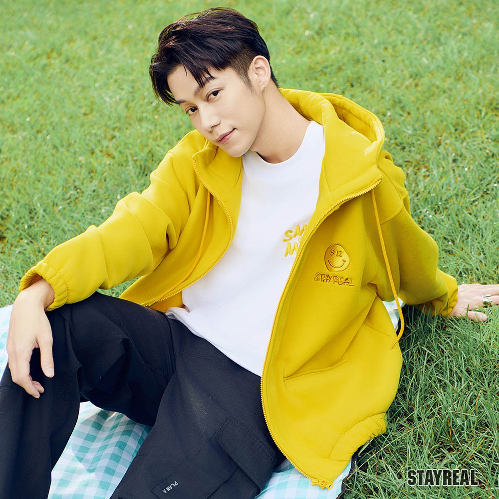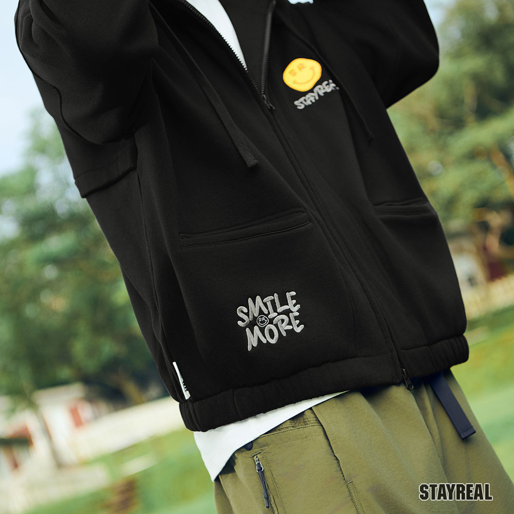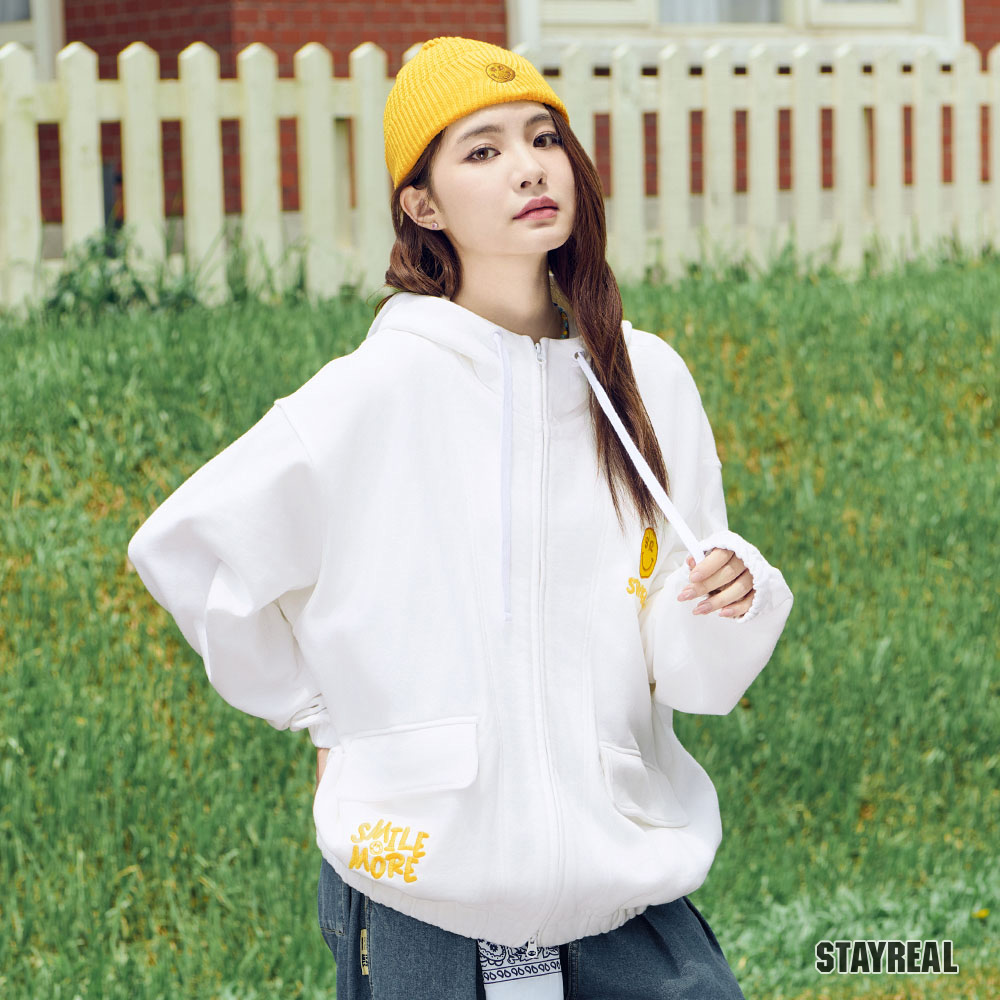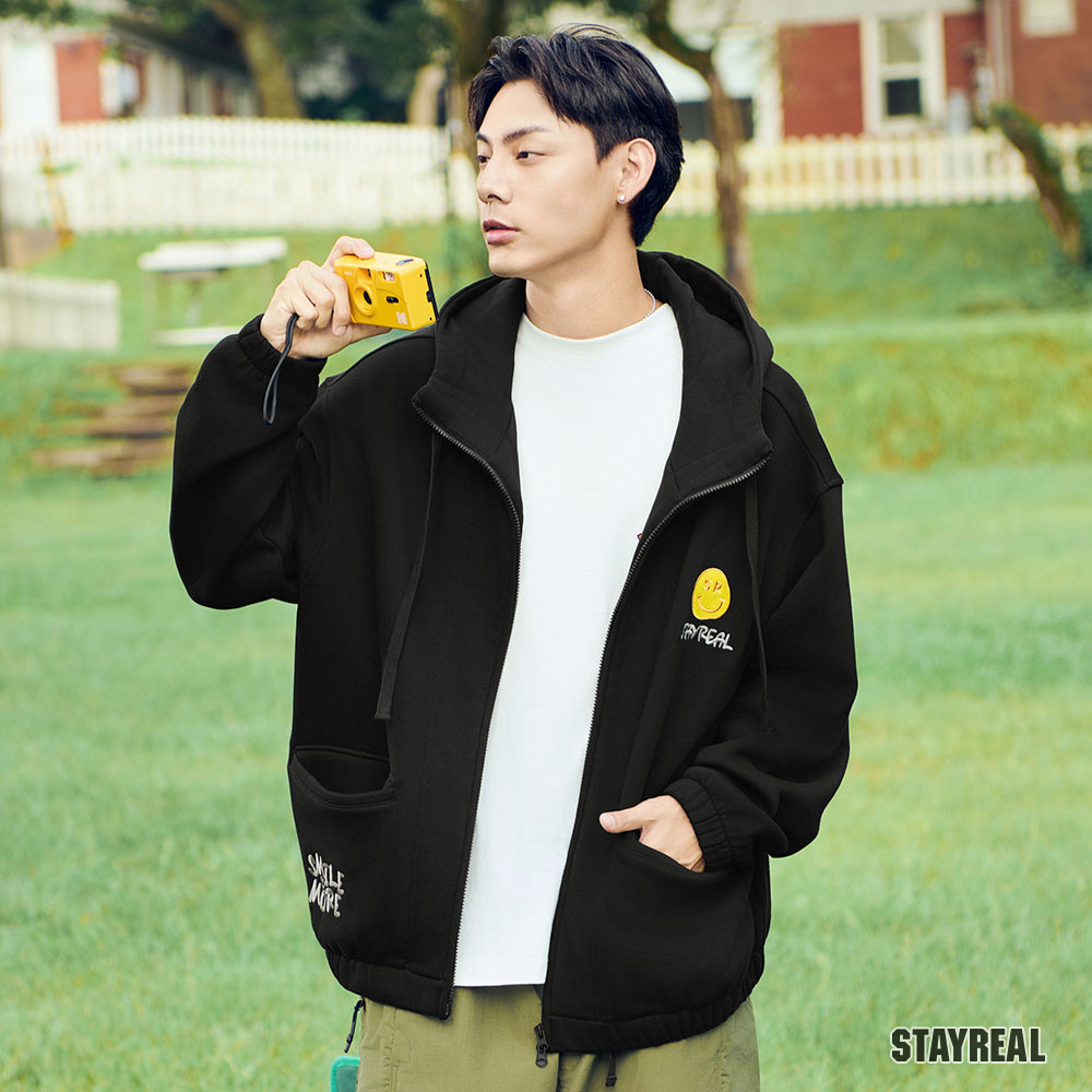前左右袋蓋口袋造型設計,後片裝飾剪接設計,讓連帽外套變得更加時髦